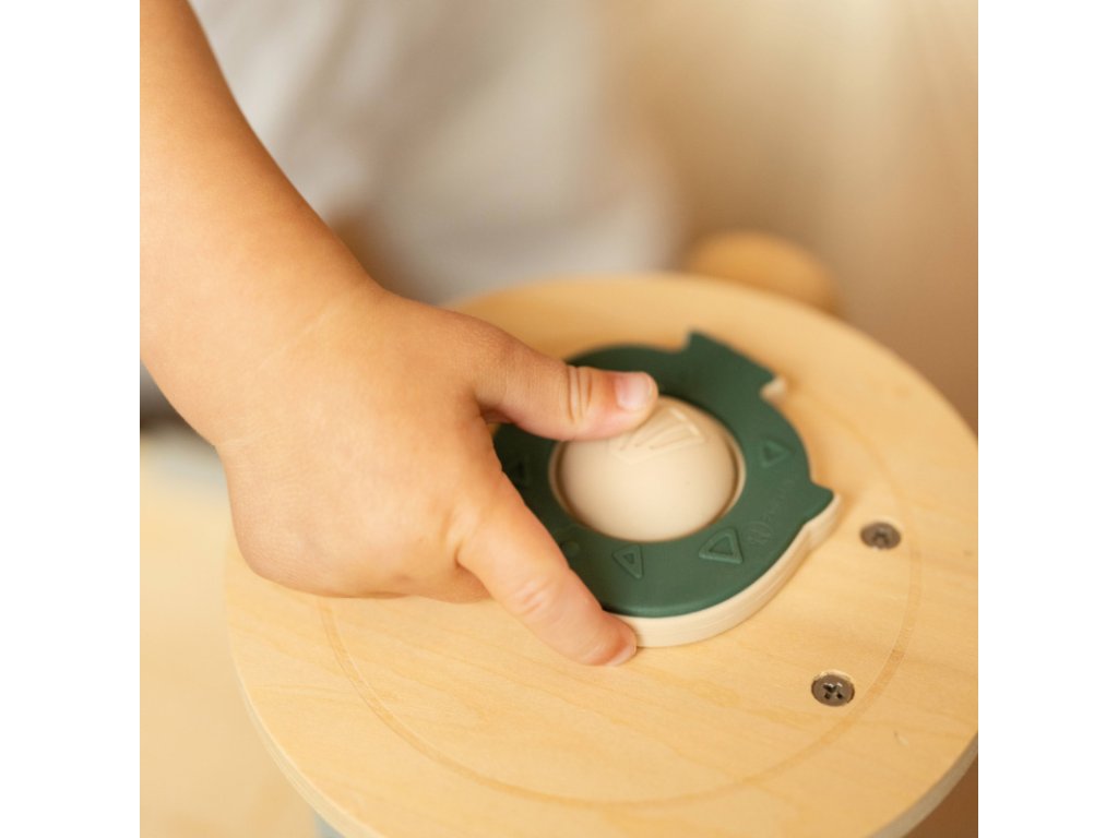 Elastické tlačítko lze mačkat a posouvat z jedné strany na druhou, což podporuje rozvoj jemné motoriky a obratnosti prstů.