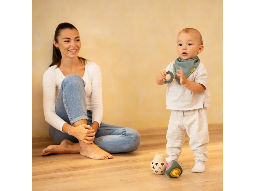 Hračka je vyrobena z vysoce kvalitního potravinářského silikonu, který je bezpečný i pro nejmenší děti. Je navržena tak, aby ulevila dětským dásním a podporovala schopnost žvýkat, zároveň povzbuzuje k cvičení úchopu.
