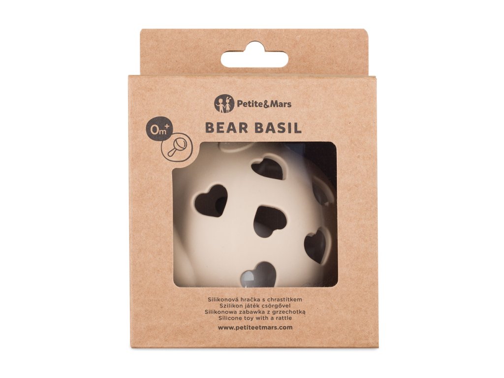 PETITE&MARS Hračka silikonová s chrastítkem Bear Basil Desert Sand 0m+