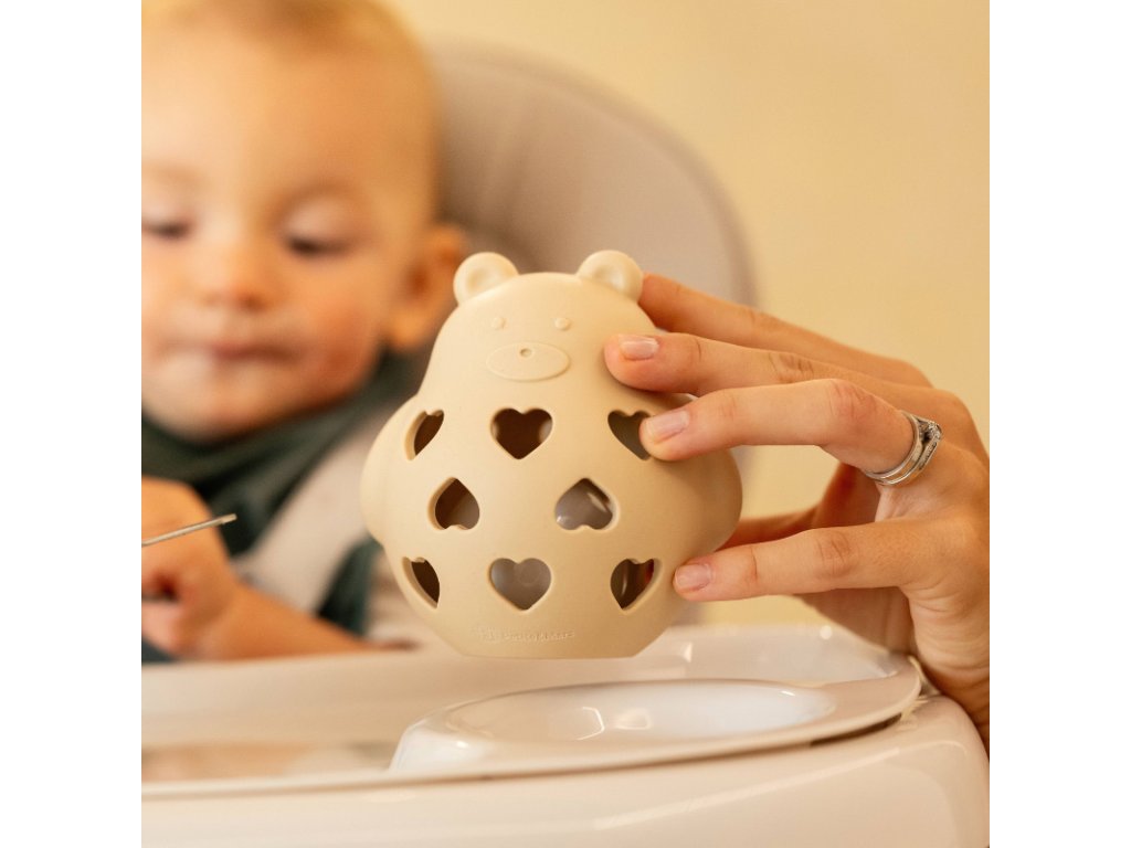 Tento roztomilý medvídek je ideální kombinace chrastítka a kousátka! Vyrobený ze 100% potravinářského silikonu, je bezpečný a příjemný pro miminka od prvního dne. Měkký silikon ulevuje dásním při prořezávání zoubků, zatímco jemné chrastění upoutá pozornost dítěte a stimuluje jeho sluch. Hračka Bear Basil podporuje rozvoj motoriky – snadno se drží i v malých ručičkách. Je odolná, lehká a snadno se čistí, což z ní činí skvělou volbu pro každého rodiče, který hledá kombinaci praktičnosti a zábavy.