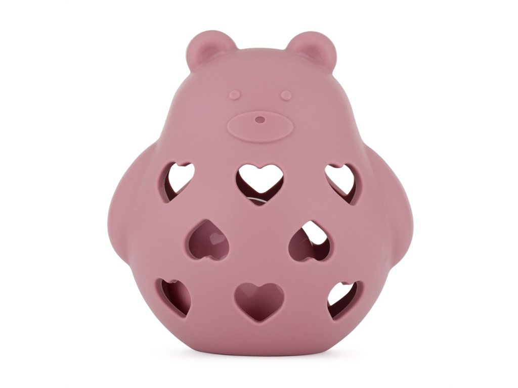 PETITE&MARS Hračka silikonová s chrastítkem Bear Basil Dusty Rose 0m+