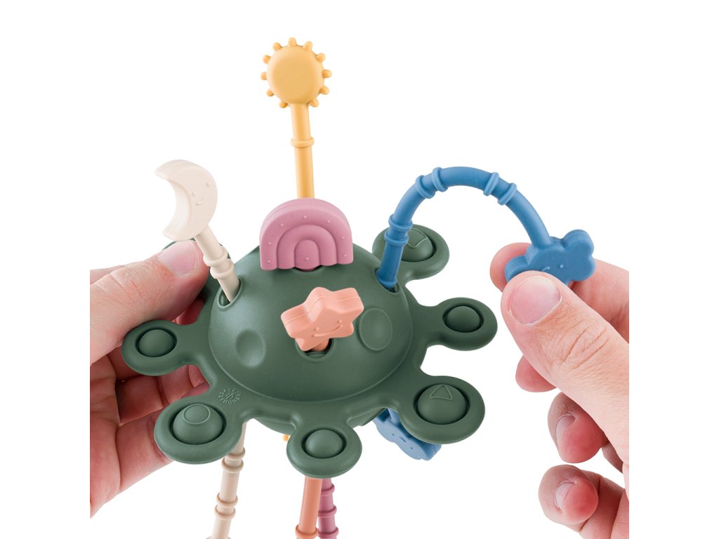Všestranná senzorická hračka ve tvaru planety Petite&Mars nejen stimuluje smysly, ale podporuje také rozvoj malých ručiček. Tato neobvyklá hračka může sloužit jako kousátko i jako nástroj pro rozvoj manuálních dovedností. Obsahuje mnoho prvků pro zkoumání: tlačítka na mačkání, silikonové šňůrky s různým stupněm obtížnosti při jejich tahání a zajímavé tvary související s atmosférickými jevy, což zaručuje dlouhotrvající a tvůrčí zábavu.