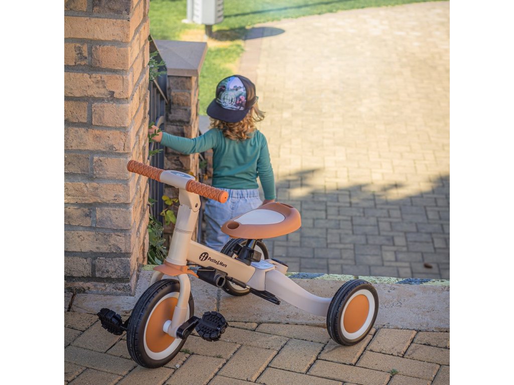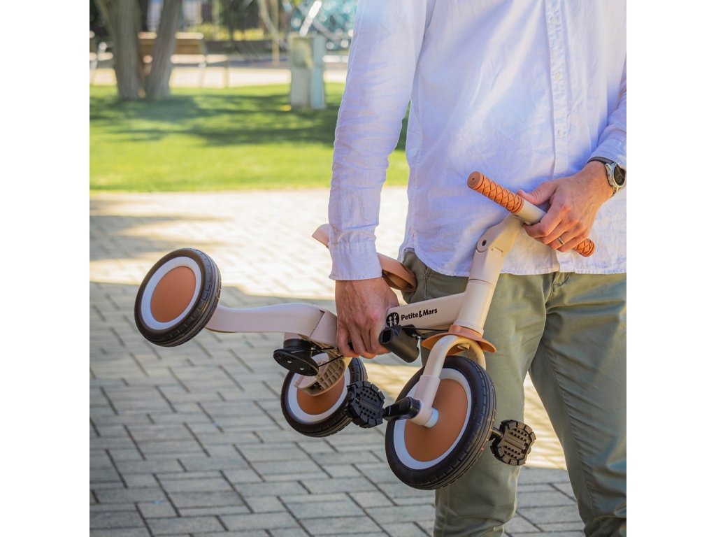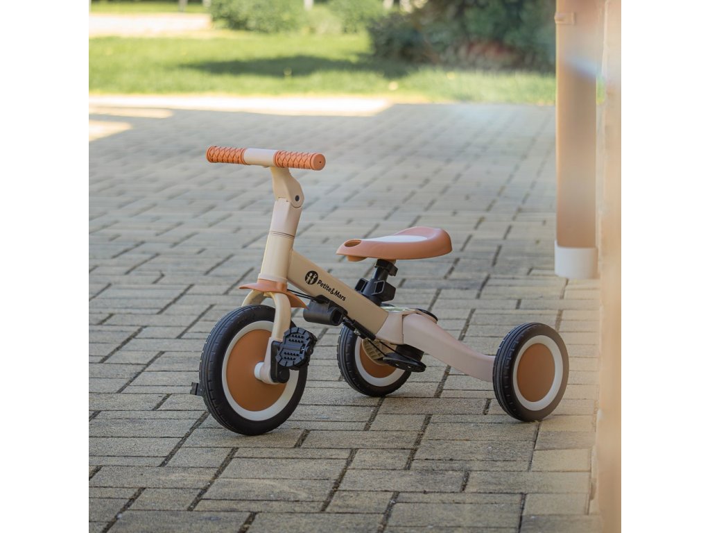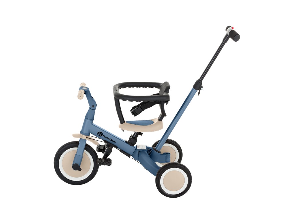 Multifunkční tříkolka určená pro děti od 1,5 do 5 let nebo do 25 kilogramů. Je to nejen dopravní prostředek pro přesun a učení se rovnováhy, ale také společník pro rostoucí dítě během mnoha vývojových fází. Promyšlené měnění se kola se přizpůsobuje potřebám děťátka podle toho, jak se vyvíjejí jeho motorické schopnosti. Zpočátku je to tříkolka s možností asistence rodiče, zatímco konečná verze je standardní kolo s pedály, bez jakýchkoli dalších podpůrných prvků. Díky takovým změnám můžete pomoci svému dítěti naučit se jezdit na dvou kolech.