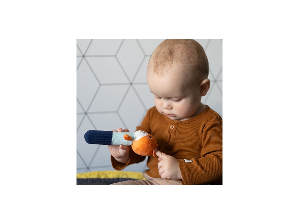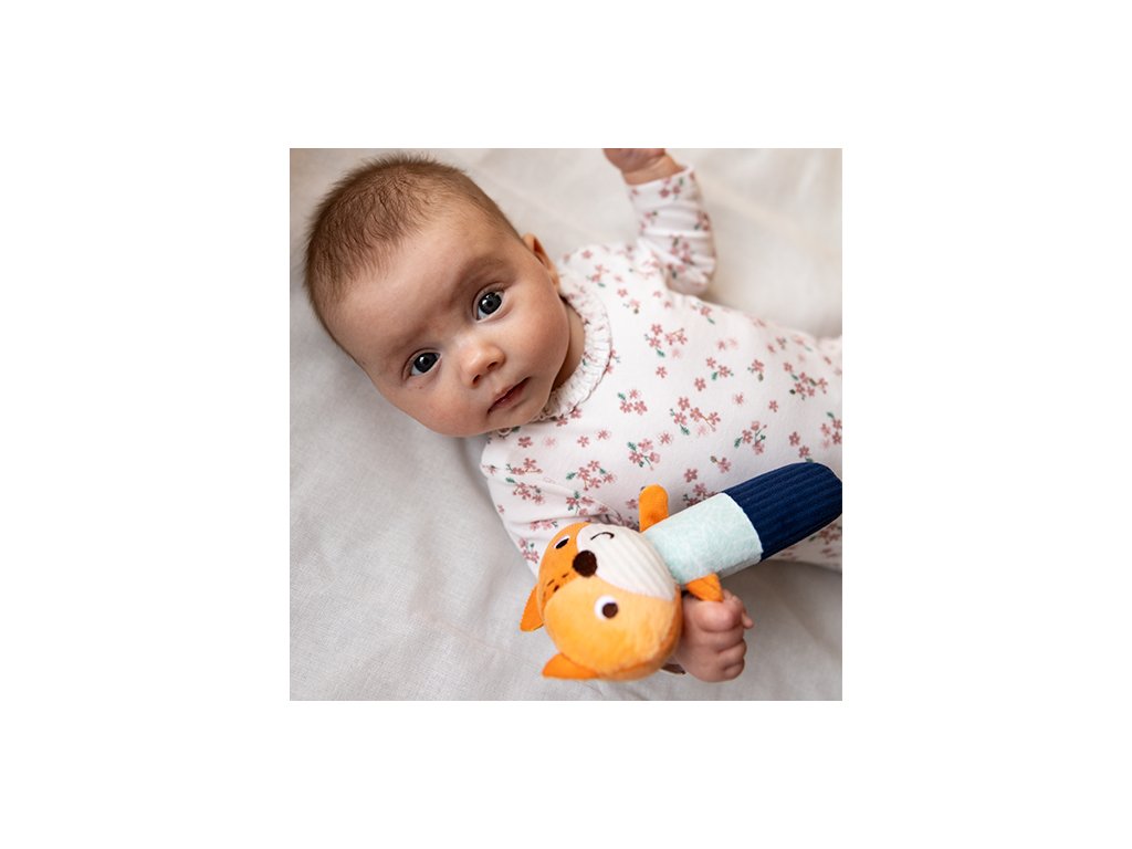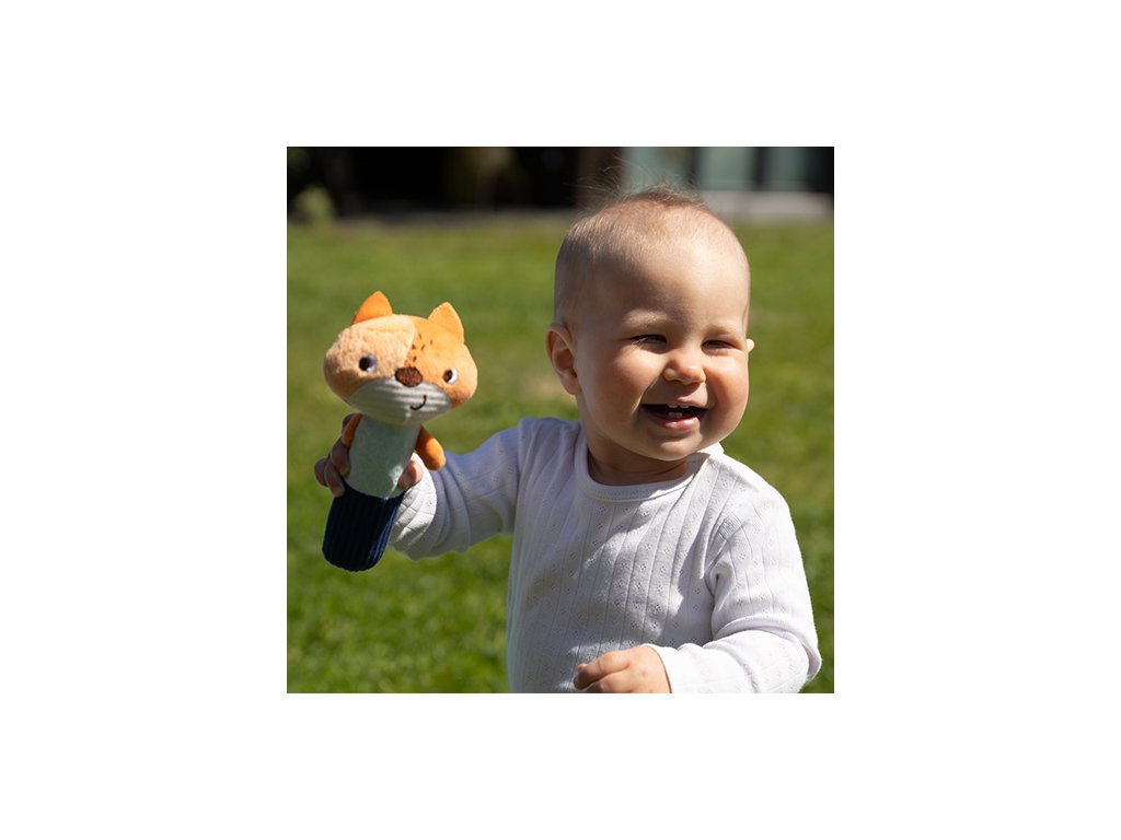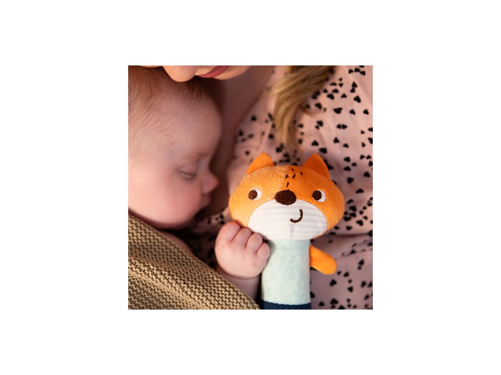 Měkká pískající liška stimuluje smysly Vašeho děťátka. Stačí jemný tlak nebo zatřesení, aby se aktivoval jemný zvuk a chrastítko. Může povzbudit děťátko ke hře a objevování věcí, jakož i umožnit mu procvičovat si dovednosti při chytání a hraní. Hračka stimuluje smysly dítěte: sluch, zrak a hmat. Tento senzorický výrobek může podporovat zrak, sluch a motorické dovednosti Vašeho děťátka od prvních týdnů jeho života. Tento zajíček se stane oblíbenou plyšovou hračkou pro Vaše děťátko. Děťátko může vidět, co se stane, když hračku chytne nebo jí zatřese. Takto učí vztahům příčiny a následku.