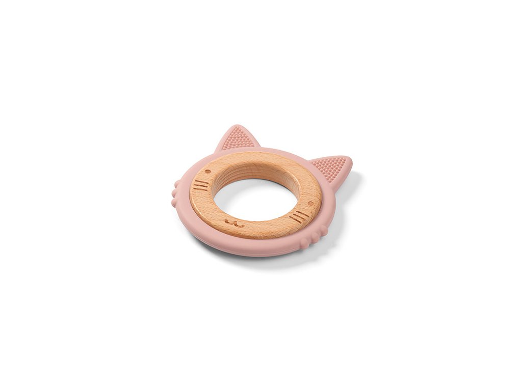 BABYONO Kousátko dřevěno-silikonové Kitten