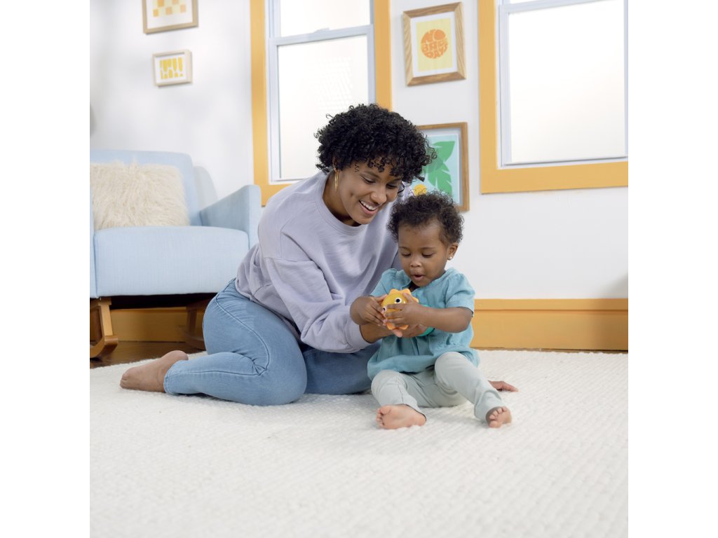 - Otoč svítící sluníčko a objev 30+ zvuků (kočka, medvěd, žába, opice, ptáček, lev)
