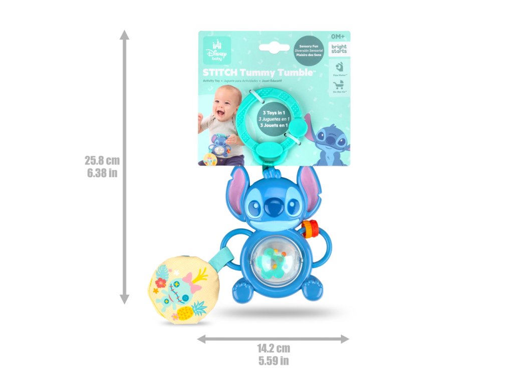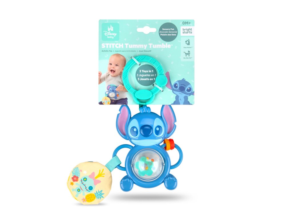 BRIGHT STARTS Hračka na C kroužku senzorická Stitch Tummy Tumble™ 0m+