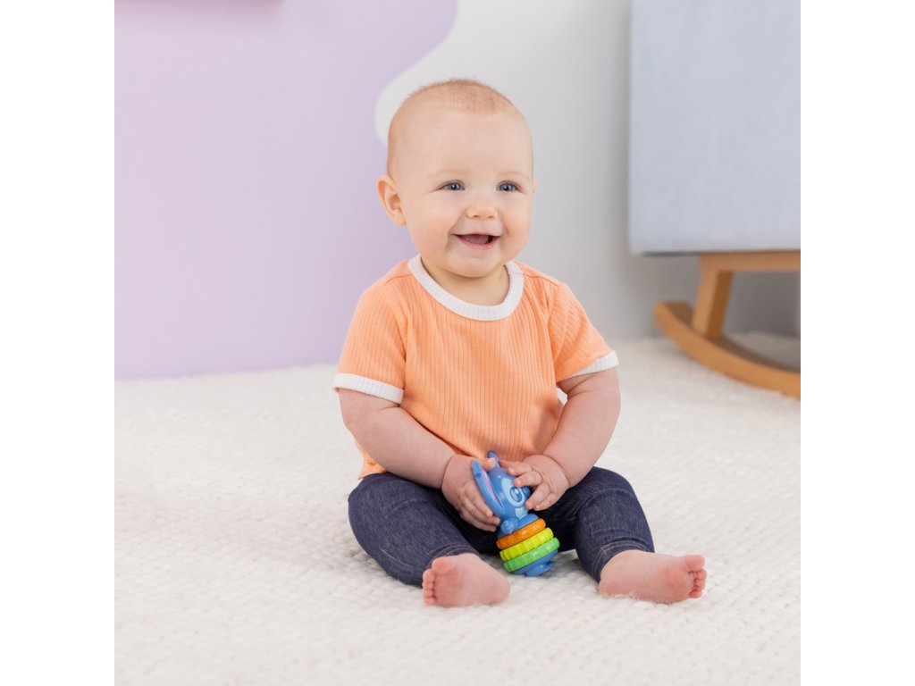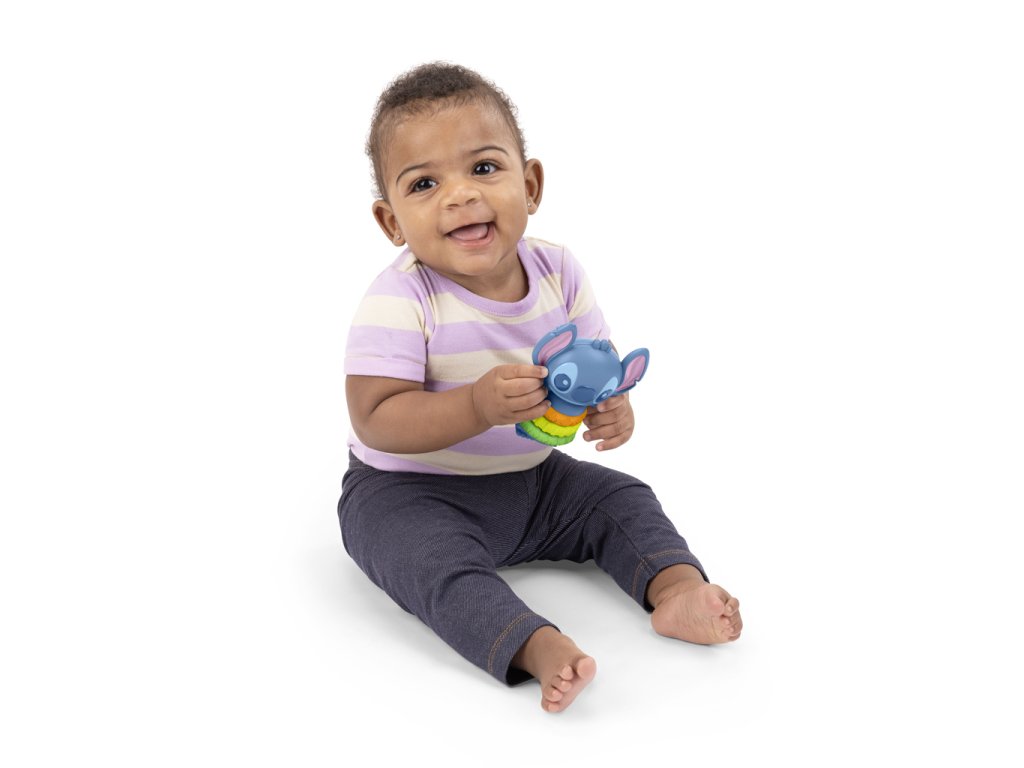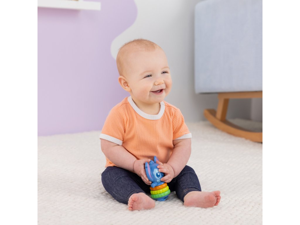 Zábava na plný plyn se smyslovou hračkou s oblíbeným Stitchem! Pestrobarevný design a tropický nádech promění každý hrací čas na malé dobrodružství. Děťátko může otáčet texturované kroužky, které vydávají příjemné klikací zvuky a třesením hrát jako s chrastítkem. Hračka stimuluje zrak, sluch a jemnou motoriku a to vše najednou! Díky lehké a kompaktní konstrukci je ideální i na cesty, jednoduše se vejde do přebalovací tašky. Vhodná pro miminka již od narození. Skvělý tip na dárek k narození, narozeninám, Vánocům či jiným příležitostem.