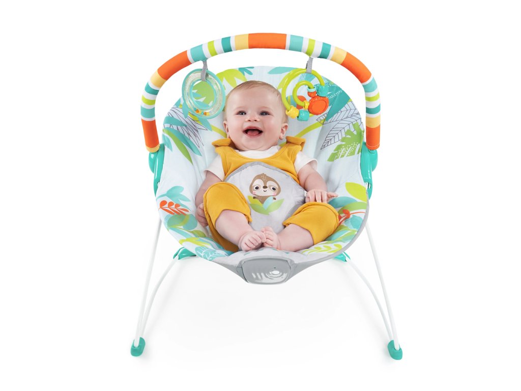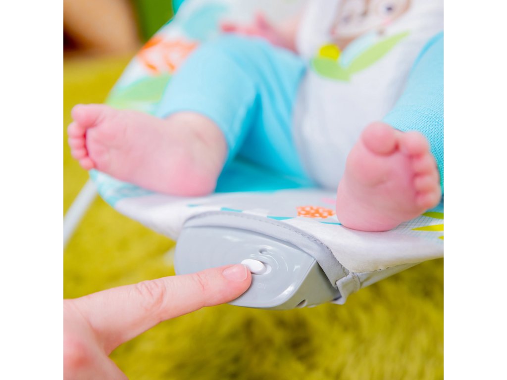Pohodlně se usaďte na gauči – vaše miminko bude v bezpečí a na dohled v lehátku s protiskluzovými nožičkami a tříbodovým bezpečnostním pásem. Když se zábava v džungli chýlí ke konci, jemné vibrace a hluboké měkké sedátko vytvoří tropický ostrov.