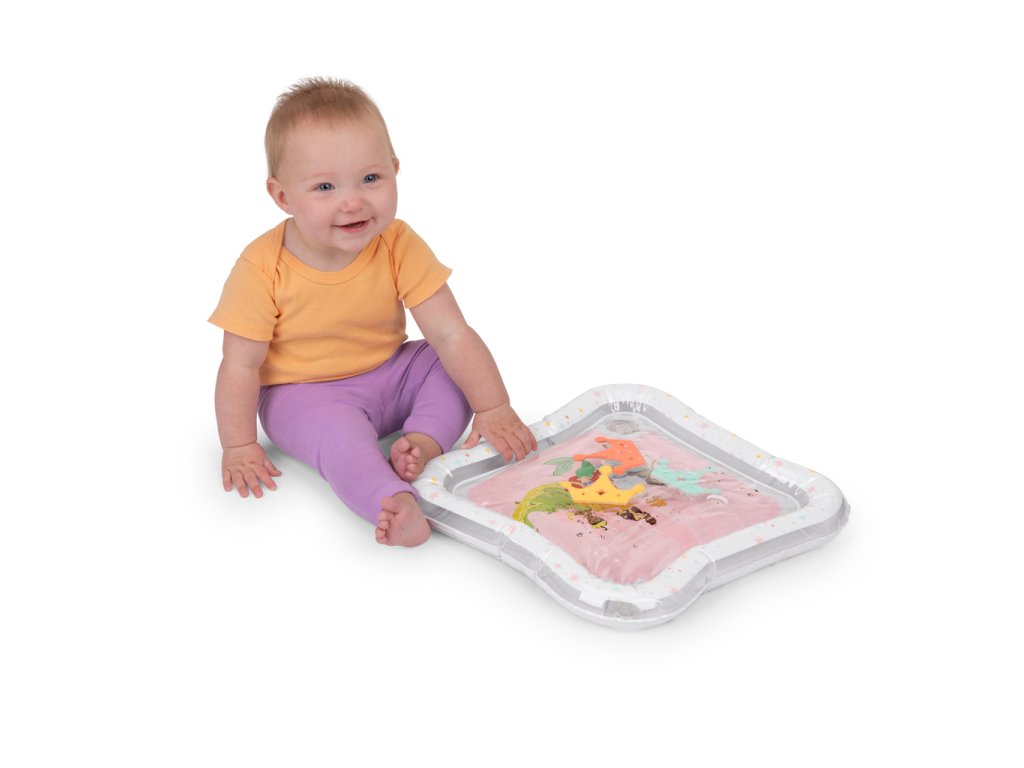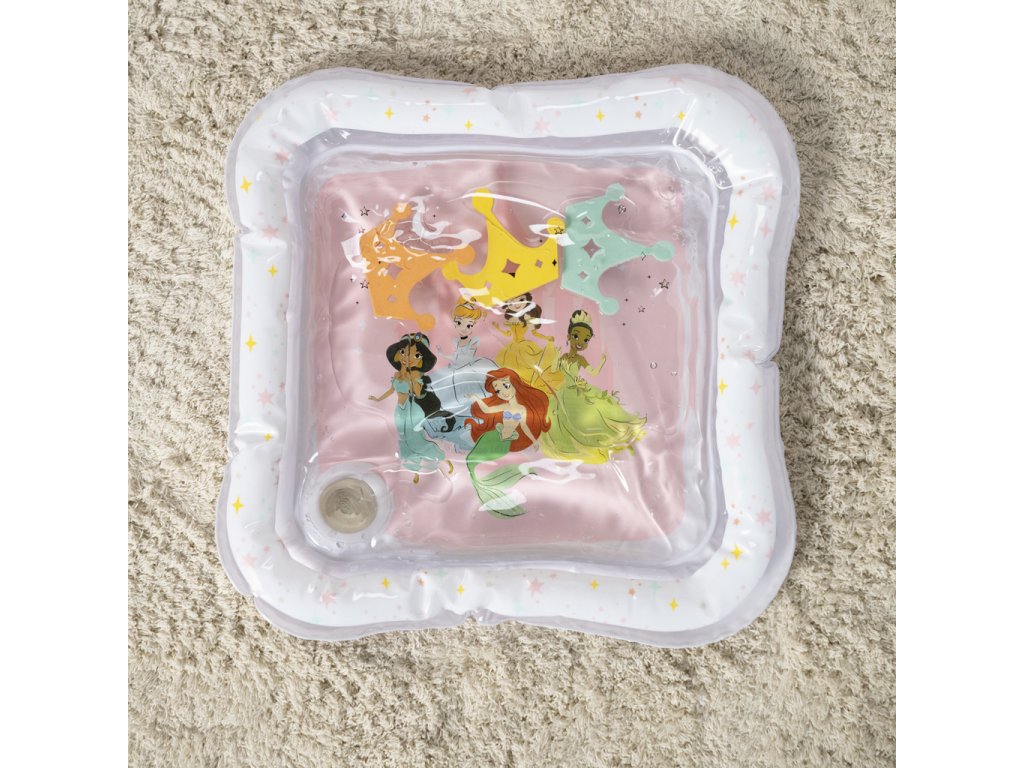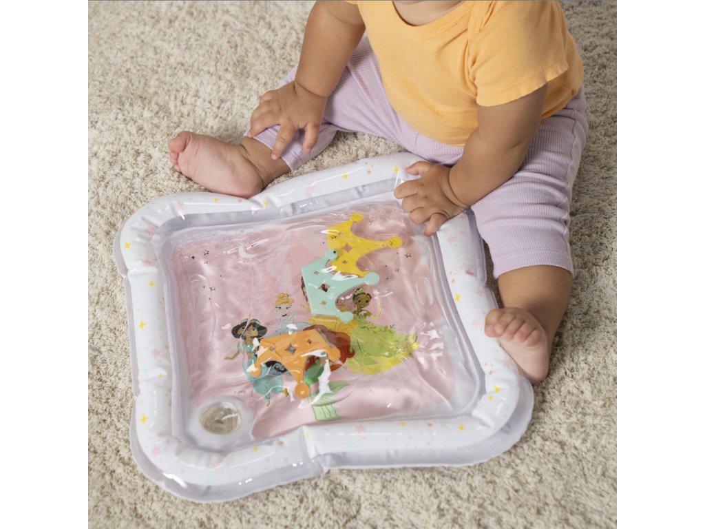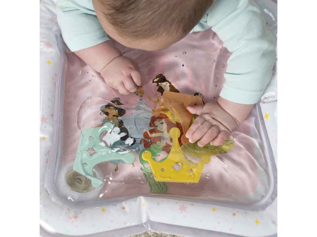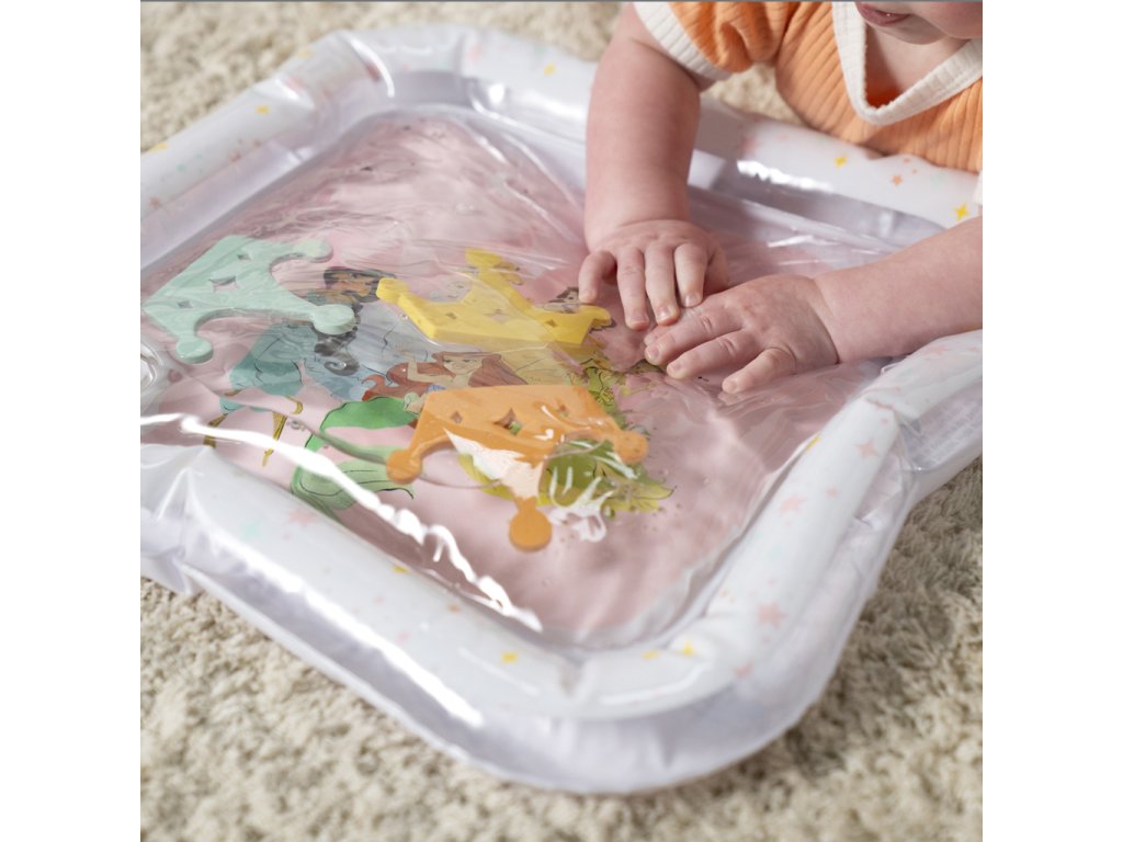 Přivítejte malé princezny do světa zábavy s okouzlující vodní podložkou Disney Princess. Tato hravá a praktická podložka přemění klasickou dobu trénování na bříšku na zábavné a podnětné dobrodružství. Tři plovoucí korunky se vznášejí uvnitř podložky, čímž stimulují zrak, dotek a koordinaci již od nejútlejšího věku. Vodní podložka s Disney princeznami je originální a praktický dárek, který rozzáří oči každé malé princezně – a ušetří rodičům úklid po hraní s vodou!