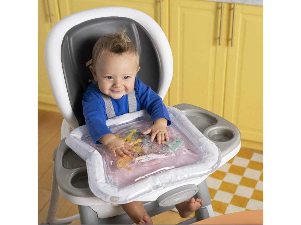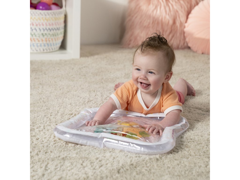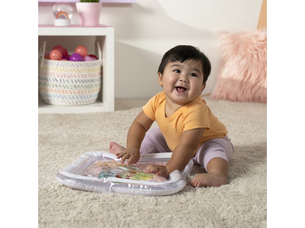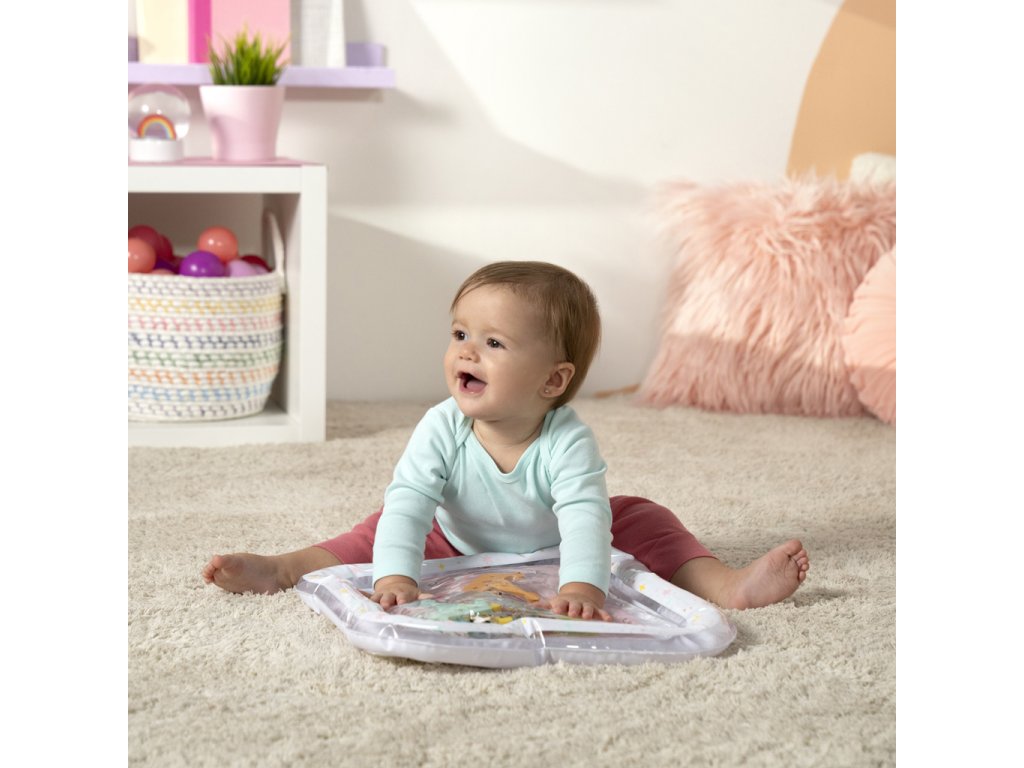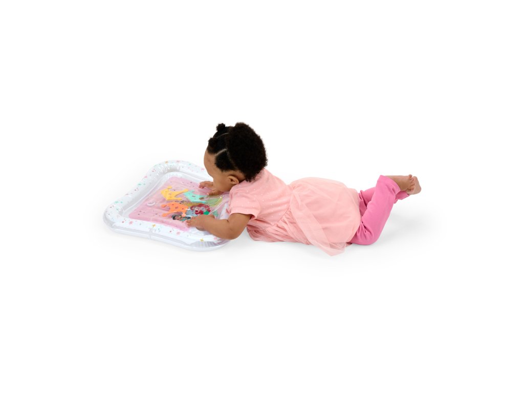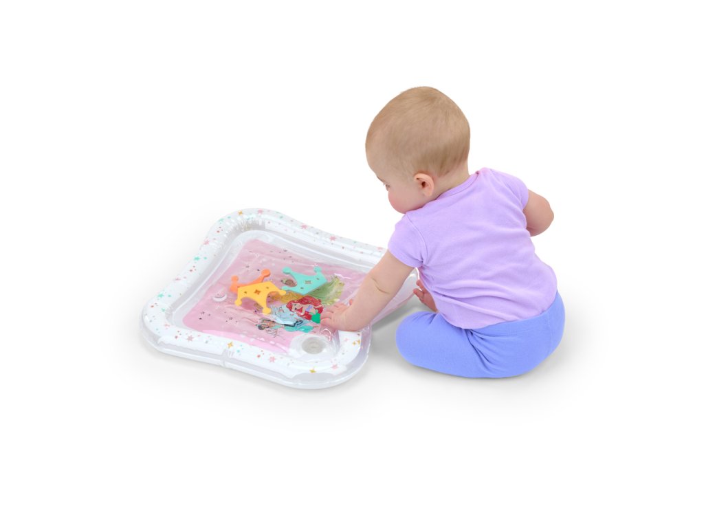 Přivítejte malé princezny do světa zábavy s okouzlující vodní podložkou Disney Princess. Tato hravá a praktická podložka přemění klasickou dobu trénování na bříšku na zábavné a podnětné dobrodružství. Tři plovoucí korunky se vznášejí uvnitř podložky, čímž stimulují zrak, dotek a koordinaci již od nejútlejšího věku. Vodní podložka s Disney princeznami je originální a praktický dárek, který rozzáří oči každé malé princezně – a ušetří rodičům úklid po hraní s vodou!