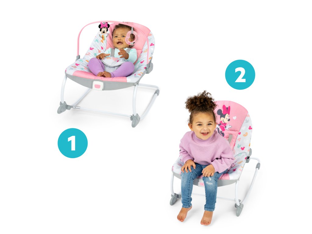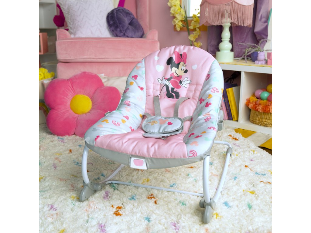Nekonečnou zábavu pro vaše miminko nebo větší princezničky přináší houpatko v designu Minnie Mouse, které ohromí i rodiče svojí funkčností a praktičností. Toto jedinečné houpátko nabízí funkci 2v1, jelikož umožňuje dvě nastavitelné polohy pro maximální pohodlí vašeho děťátka. Houpací poloha je vhodná pro batolata, přičemž zafixováním zadního stojanu dostanete houpatko do polohy pevného sedadla/křesílka pro starší dětičky.