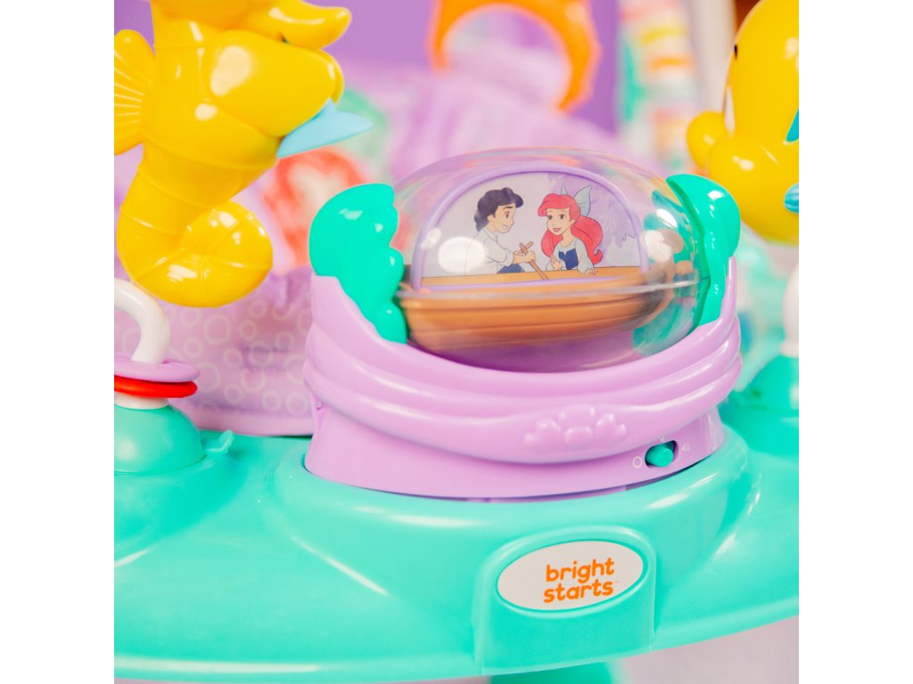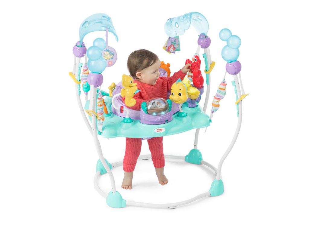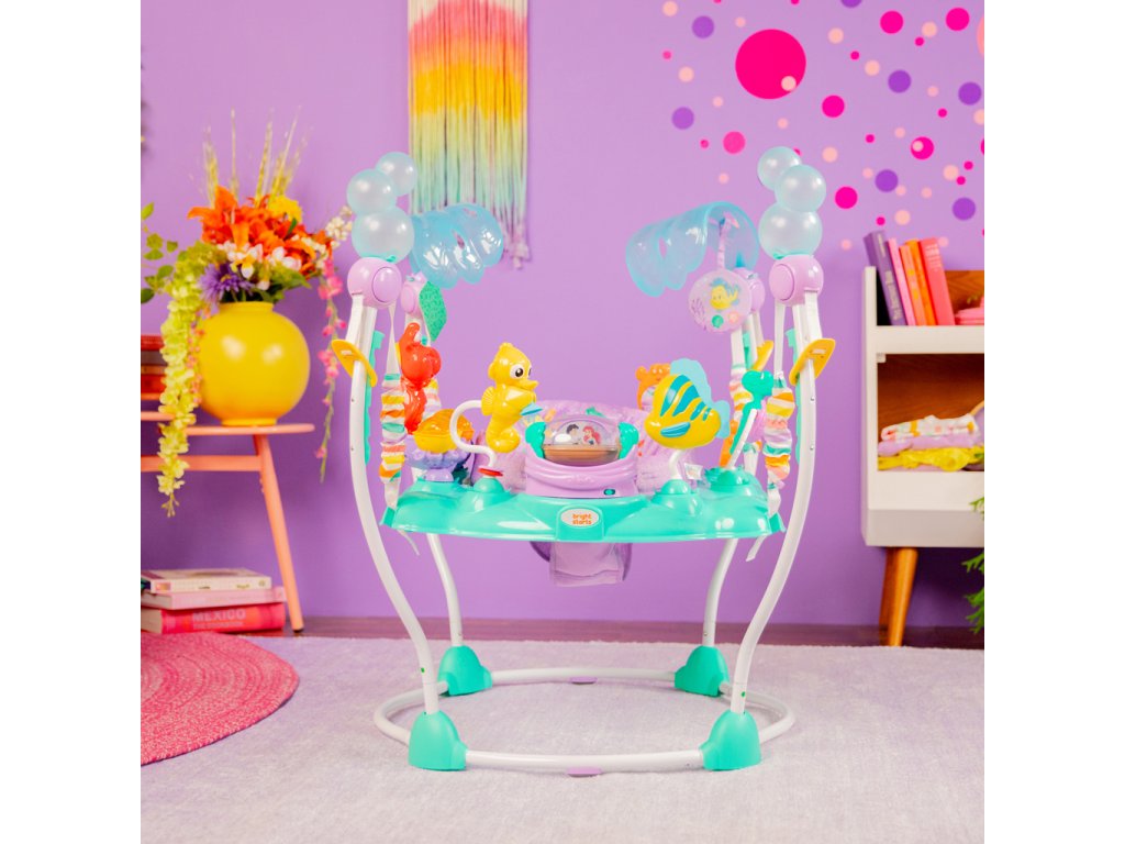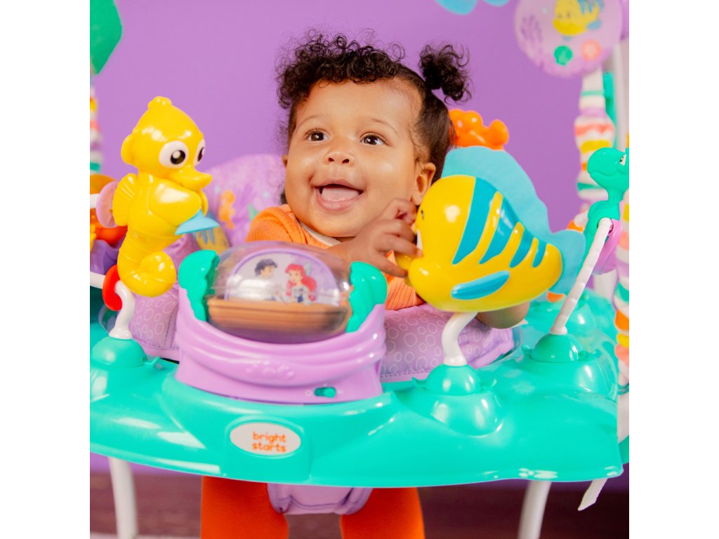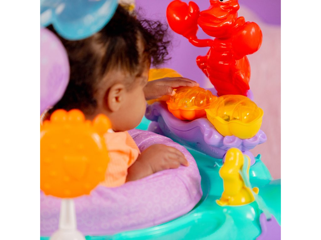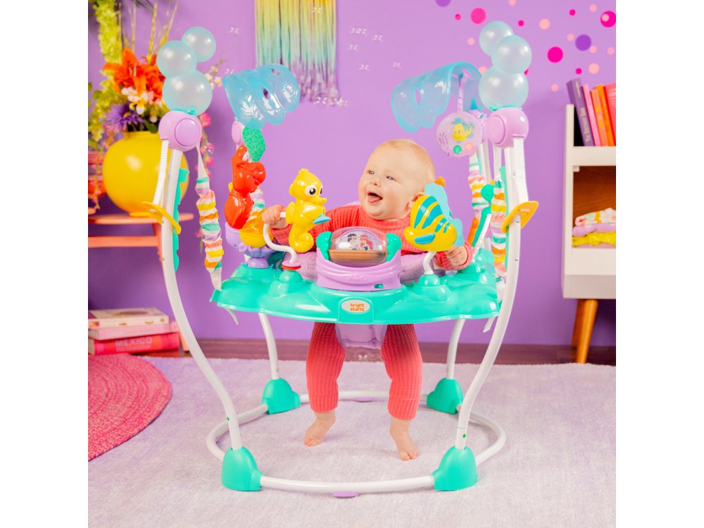 Skočte pod mořskou hladinu a objevte hlubiny s tímto úžasným dětským skákadlem Disney Princezna Ariel! Vaše dítě si užije více než 10 hraček a aktivit, včetně Sebastiana a Floundera. Skákáním aktivuje světla a zvuky, které ho odmění a pomohou mu pochopit vztah příčiny a následku. Otočné sedadlo umožňuje přístup ke všem hračkám a výškově nastavitelný rám roste s dítětem. Snadno se čistí a je bezpečné pro děti od 6 do 12 měsíců nebo do 11 kg.