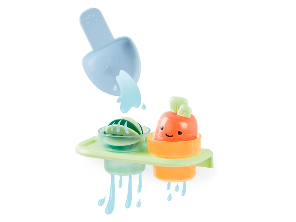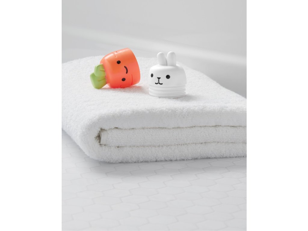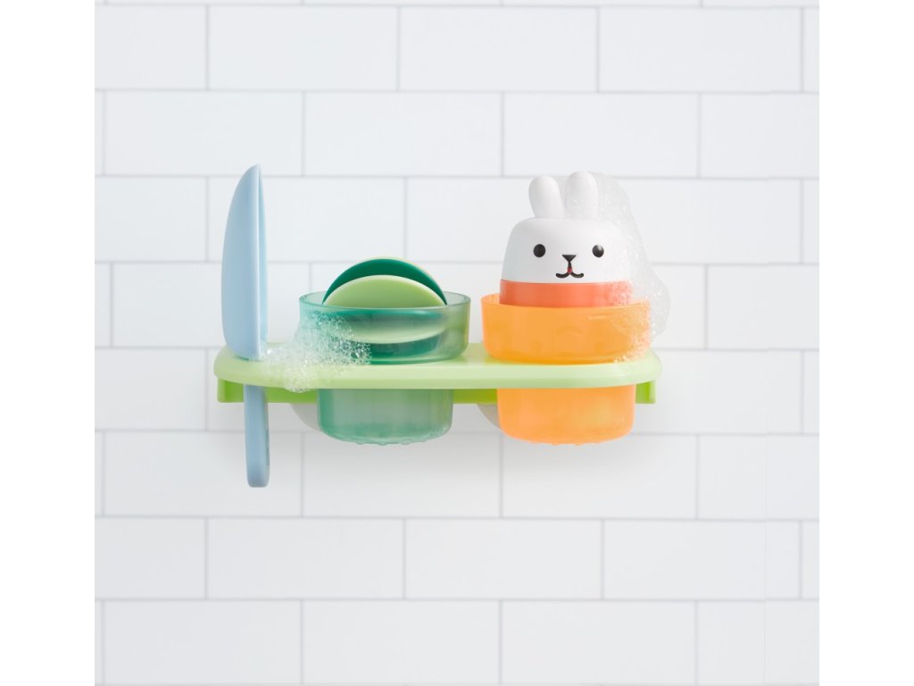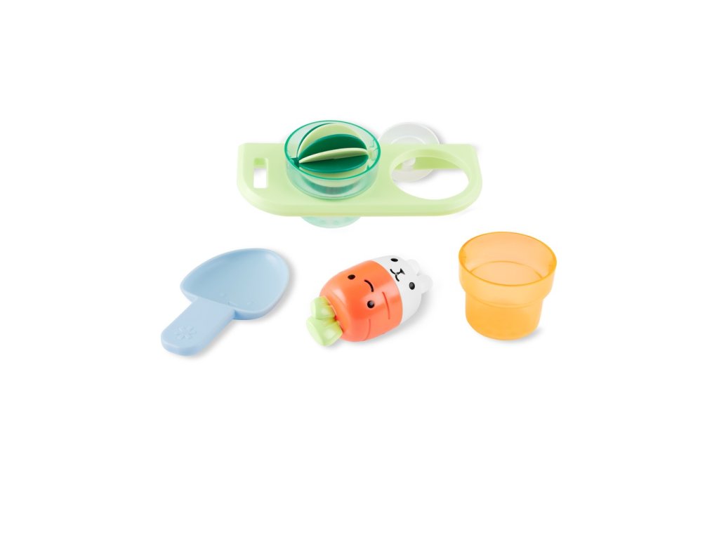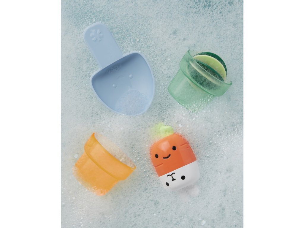 Lopatka pomůže malým zahradníkům při nabírání vody, zatímco mrkvová a zaječí stříkačka s 2-dílnou konstrukcí je snadno čistící a ideální pro kombinování a mixování. Květinový stojan se snadno přichytí ke stěně vany díky přísavkám, čímž se celý set uchytí a zajistí, že všechny dílky budou na správném místě. Tento zábavný set nejen že poskytuje hodiny zábavy, ale zároveň pomáhá rozvíjet motorické dovednosti, podporuje pochopení příčiny a následků a stimuluje předvídavost.