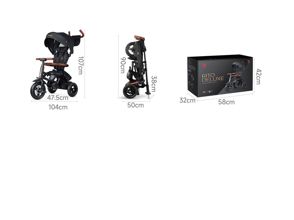 QPLAY Tříkolka Rito Deluxe Grey, 6 v 1, věk 10-72 měsíců
