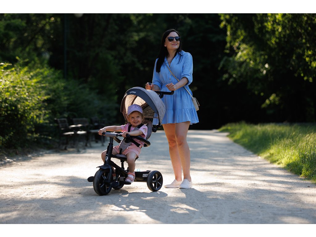 Nová verze QPlay Rito, díky které budou jízdy s vaším děťátkem ještě krásnější a zábavnější! Aktualizovaný rám s černým hliníkovým rámem, nová kola se sportovním designem, sluneční stříška s rozšířením, vhodná pro děti od 10 do 72 měsíců.