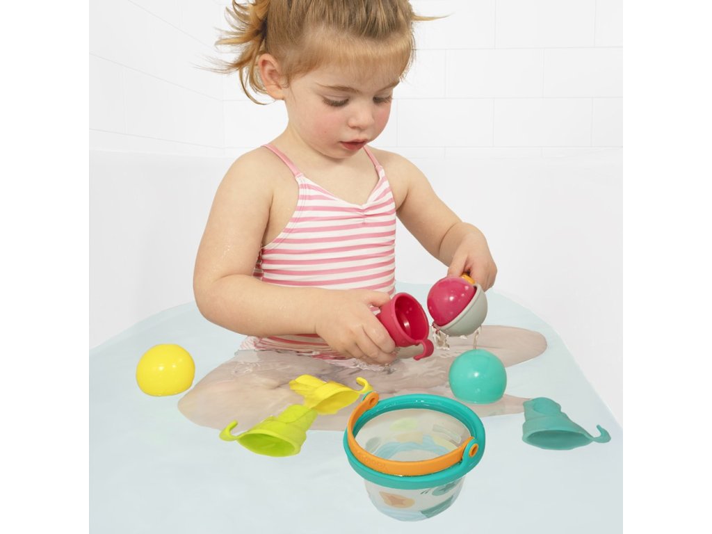 Ať už v bazénu, ve vaně nebo na zahradě si děti mohou nabírat, skládat a nalévat zmrzlinu pomocí naběračky a plovoucích kornoutů. Budou tak přitom objevovat překvapivé vodní efekty a rozvíjet si hrou rané dovednosti.