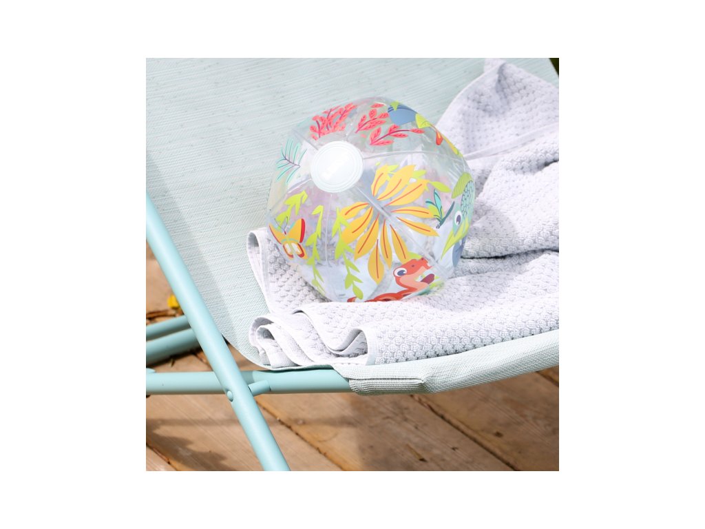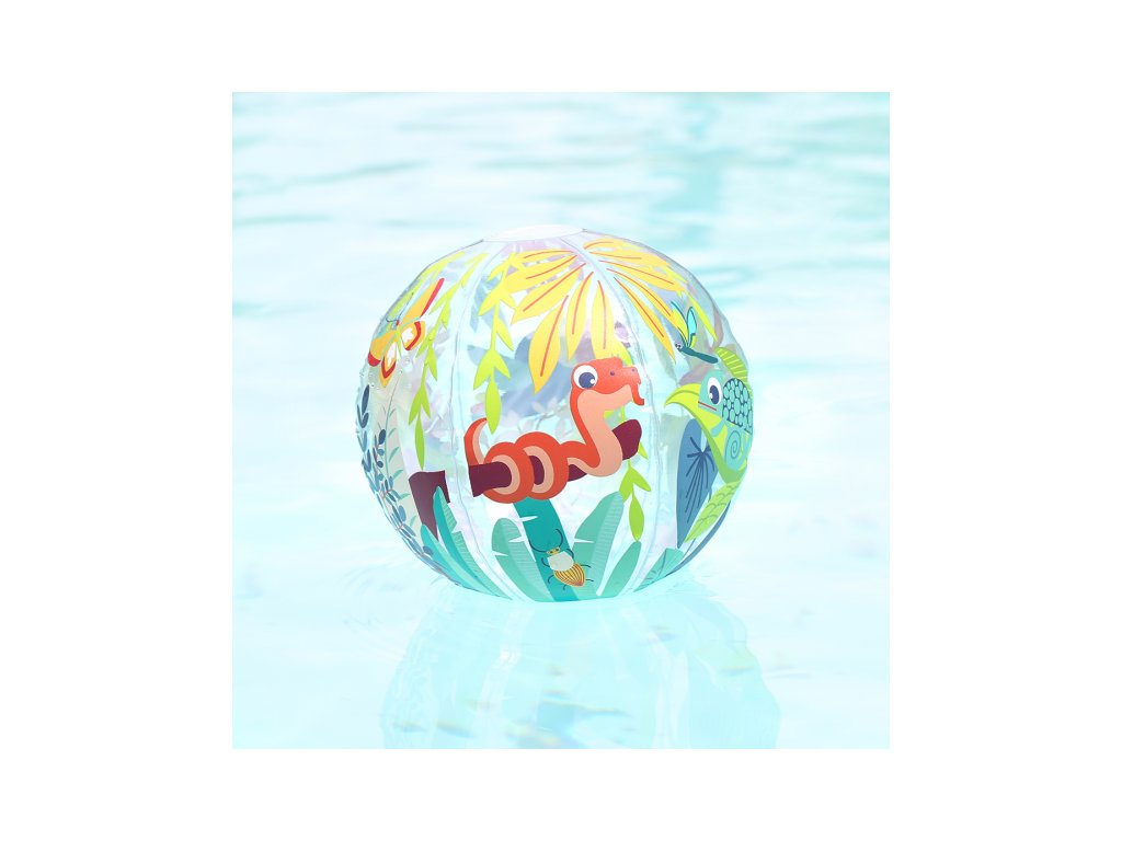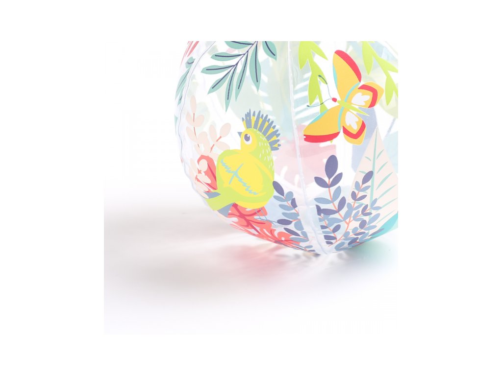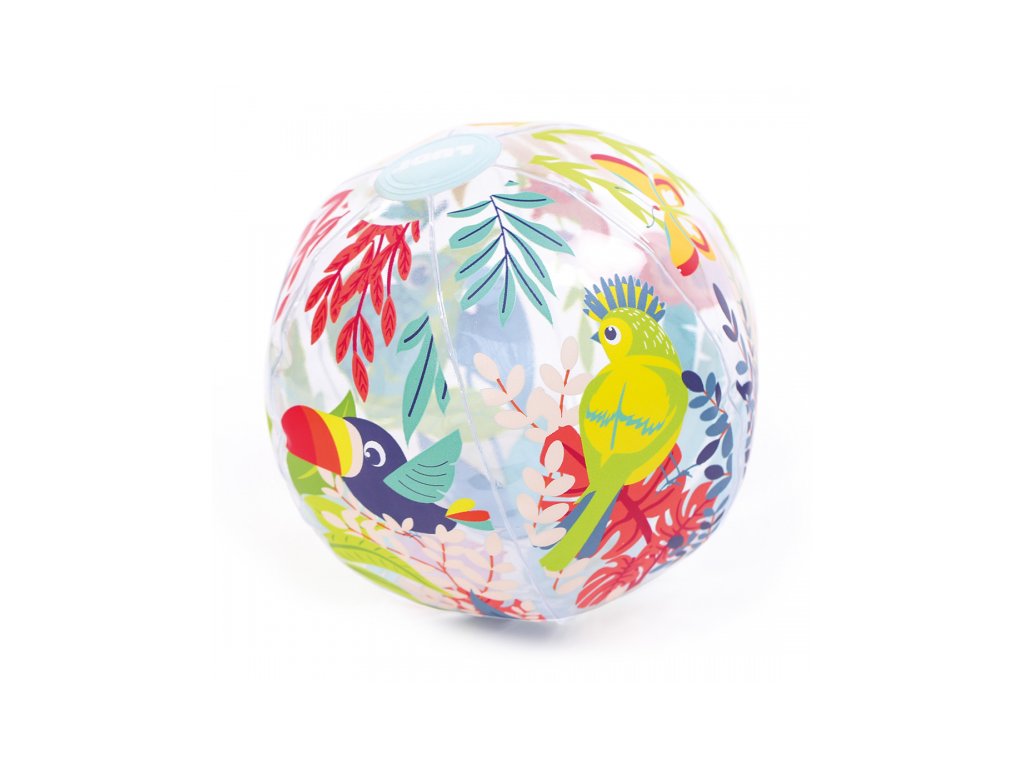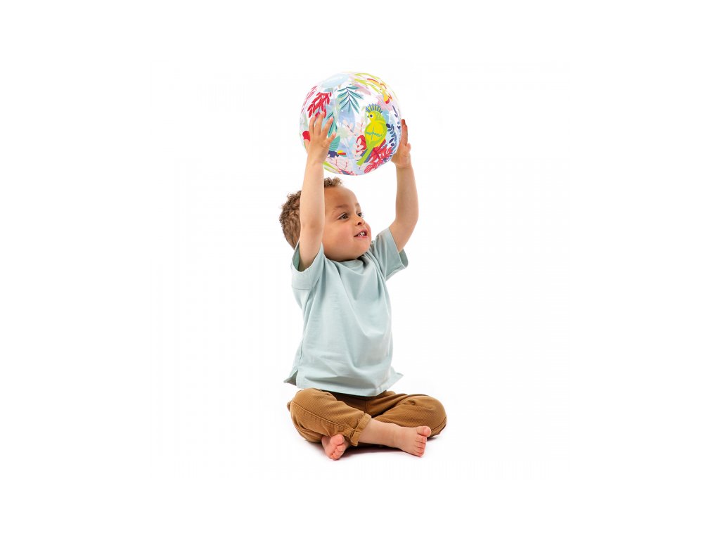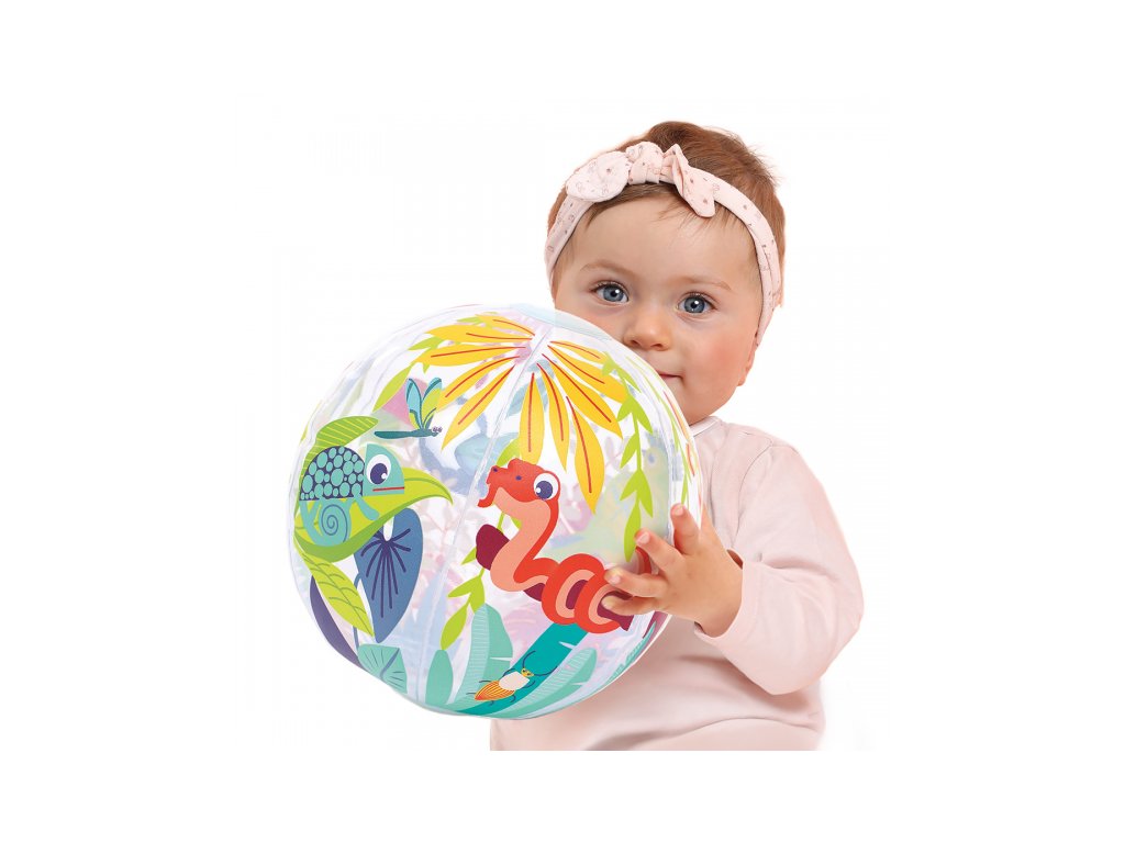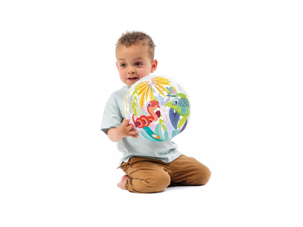 Nafukovací míč Jungle Ball je navržený speciálně pro nejmenší – pomáhá dětem objevovat svět pohybu, hmatu i zraku. Díky tropickému motivu a veselým barvám přitahuje pozornost a probouzí přirozenou zvídavost dítěte. Děti si s míčem mohou házet, kutálet ho, odrážet i sledovat jeho pohyb. Hraní s míčem stimuluje hrubou motoriku, reflexy i představivost.