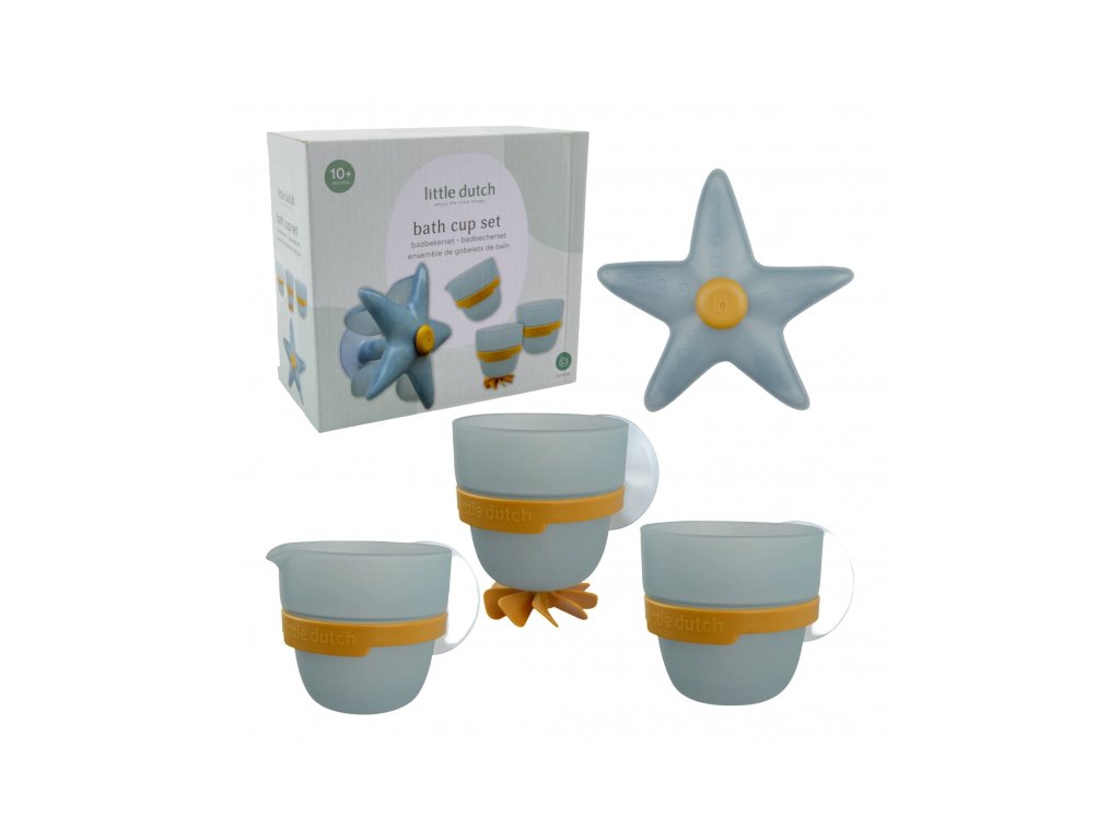 Proměňte koupání v radostnou hru se sadou kelímků Little Dutch! Tento hravý set obsahuje vodní mlýnek ve tvaru hvězdice, dva kelímky a nalévací hrneček, které lze pomocí přísavek snadno připevnit na stěnu vany nebo sprchy. Stačí nalít vodu na hvězdici a sledovat, jak se začne točit – děti si přitom procvičují koordinaci, objevují zákonitosti pohybu vody a rozvíjejí jemnou motoriku. Jemné barvy a promyšlený design hračky dělají z koupání příjemný rituál plný fantazie a objevování.