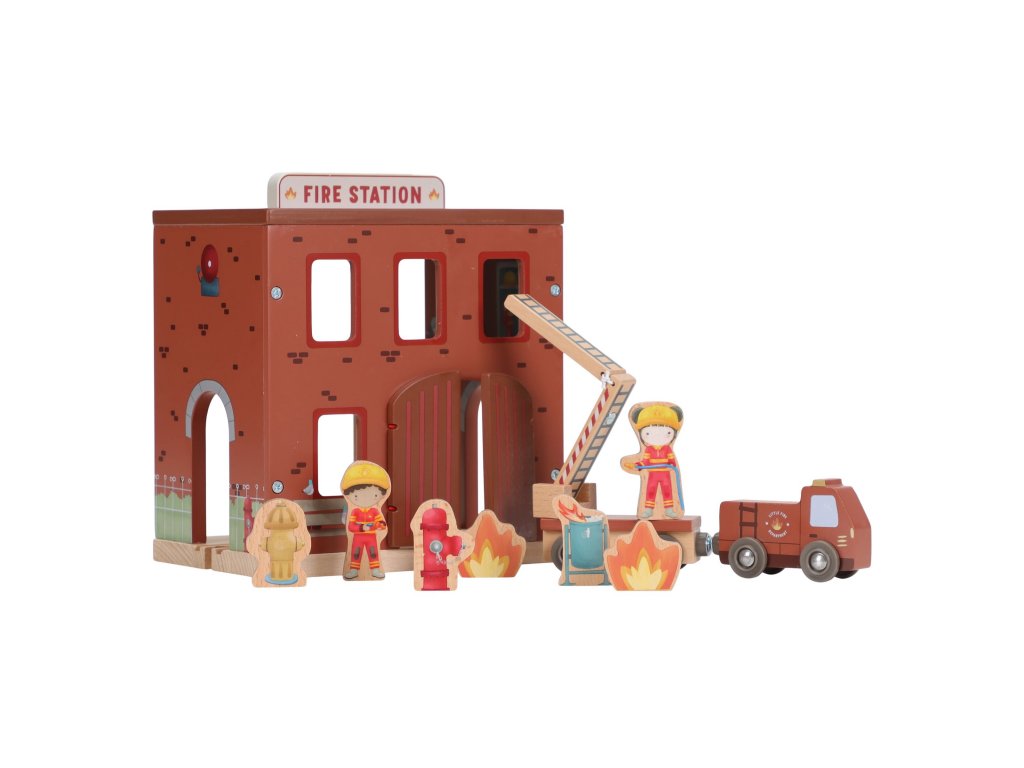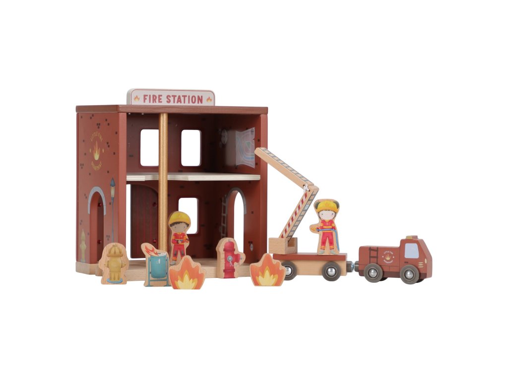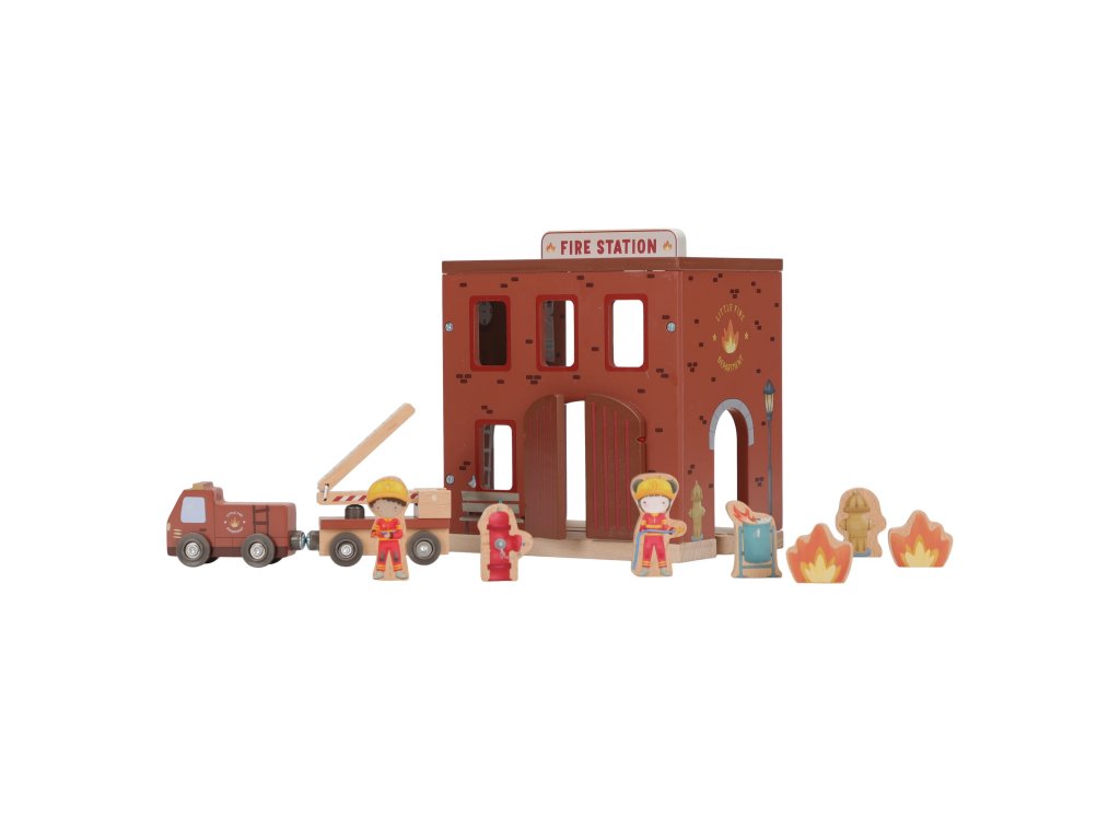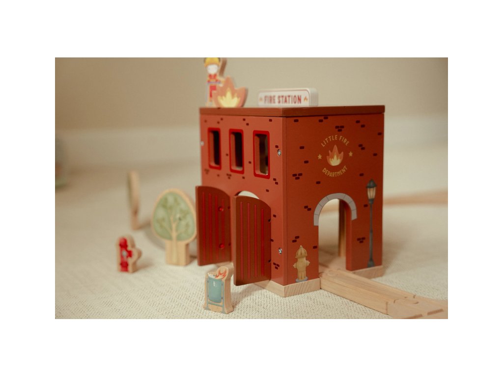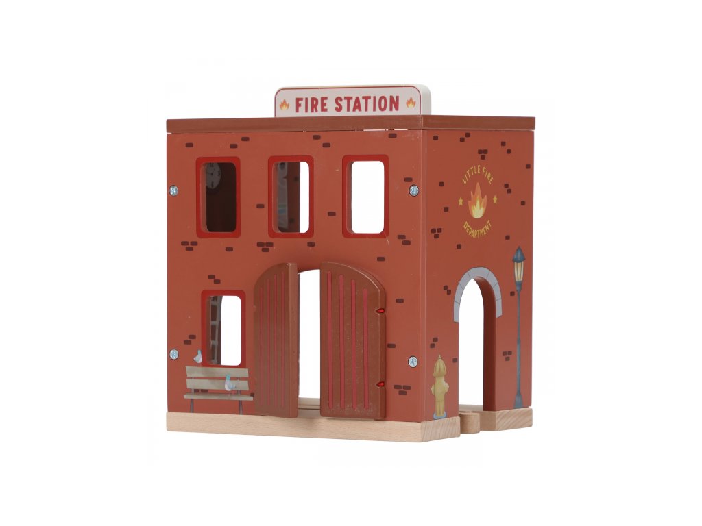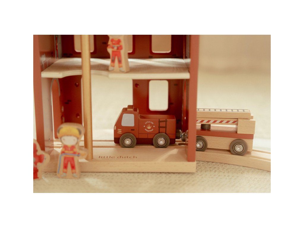 Součástí sady jsou figurky hasičů, oheň a hořící popelnice pro realistické hraní. Dveře stanice lze otevřít, aby mohl zásah začít co nejrychleji. Hasičská stanice je kompatibilní s dřevěnou vláčkodráhou Little Dutch, což umožňuje ještě více zábavy a kombinací.