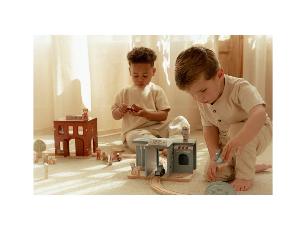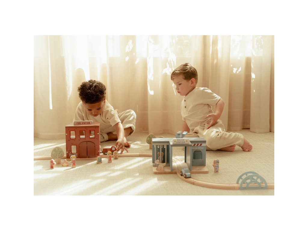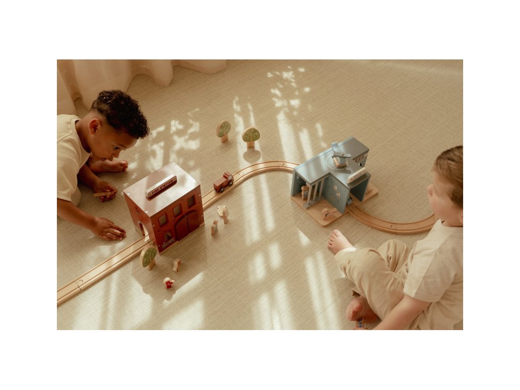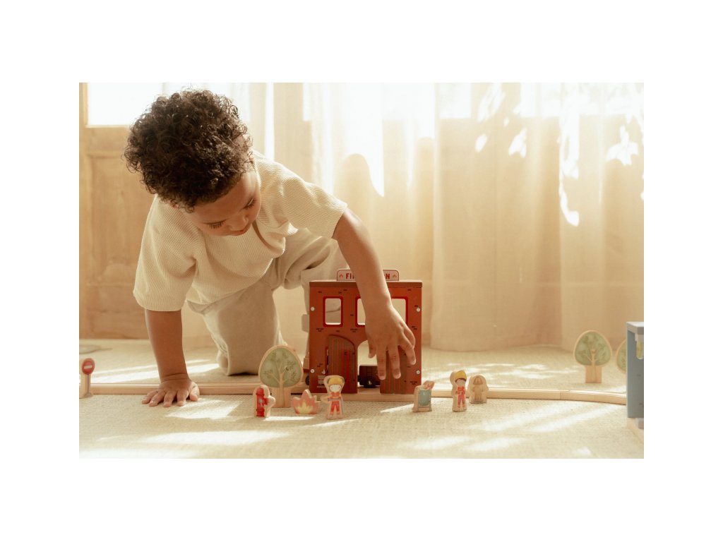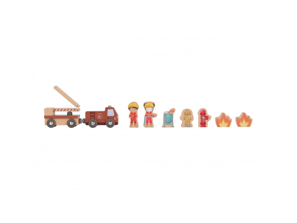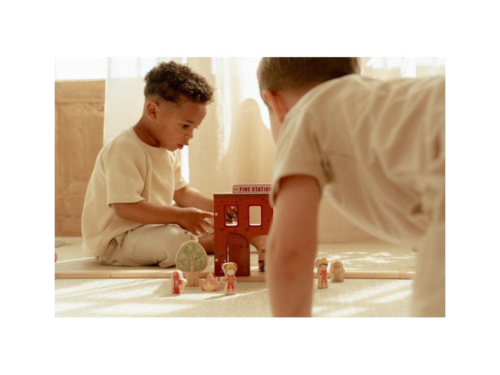 Součástí sady jsou figurky hasičů, oheň a hořící popelnice pro realistické hraní. Dveře stanice lze otevřít, aby mohl zásah začít co nejrychleji. Hasičská stanice je kompatibilní s dřevěnou vláčkodráhou Little Dutch, což umožňuje ještě více zábavy a kombinací.