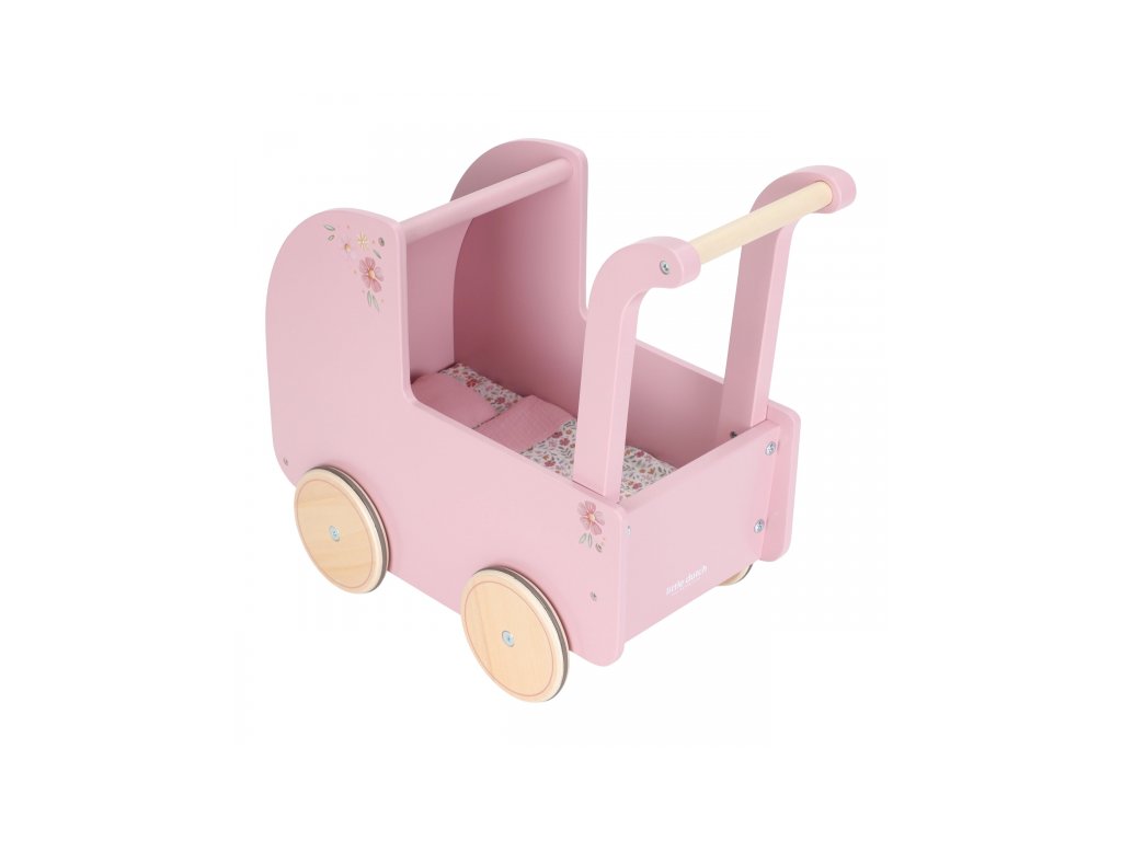 Tento nádherný dřevěný kočárek pro panenky zaujme svým retro designem a něžným květinovým potiskem. Součástí kočárku je měkký polštářek, hřejivá peřinka a pohodlná matrace – vše laděné do jemného květinového designu. Ideální volba pro malé pečovatelky i pečovatele, kteří chtějí své panenky vozit stylově a pohodlně.