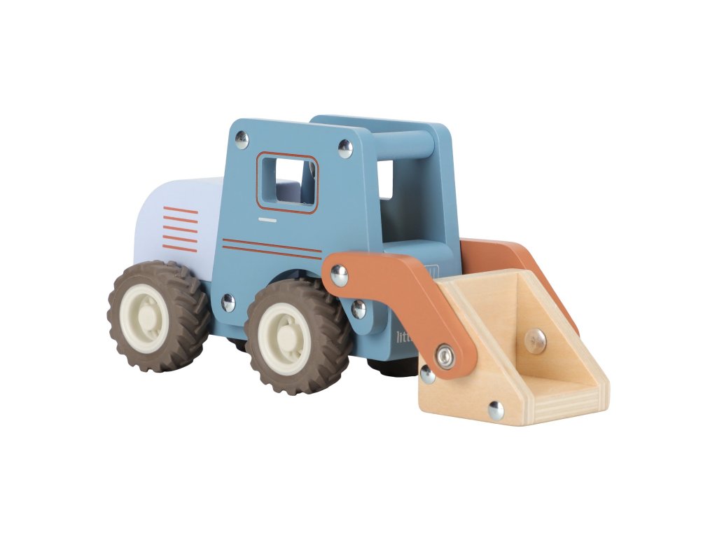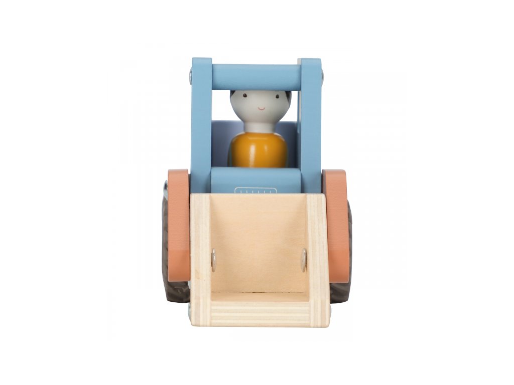 Součástí hračky je dřevěná figurka stavbaře, která rozšiřuje možnosti hry a podporuje představivost. Nakladač můžete kombinovat s dalšími stavebními vozidly – například s autojeřábem, míchačkou nebo sklápěčkou – pro kompletní stavební dobrodružství.