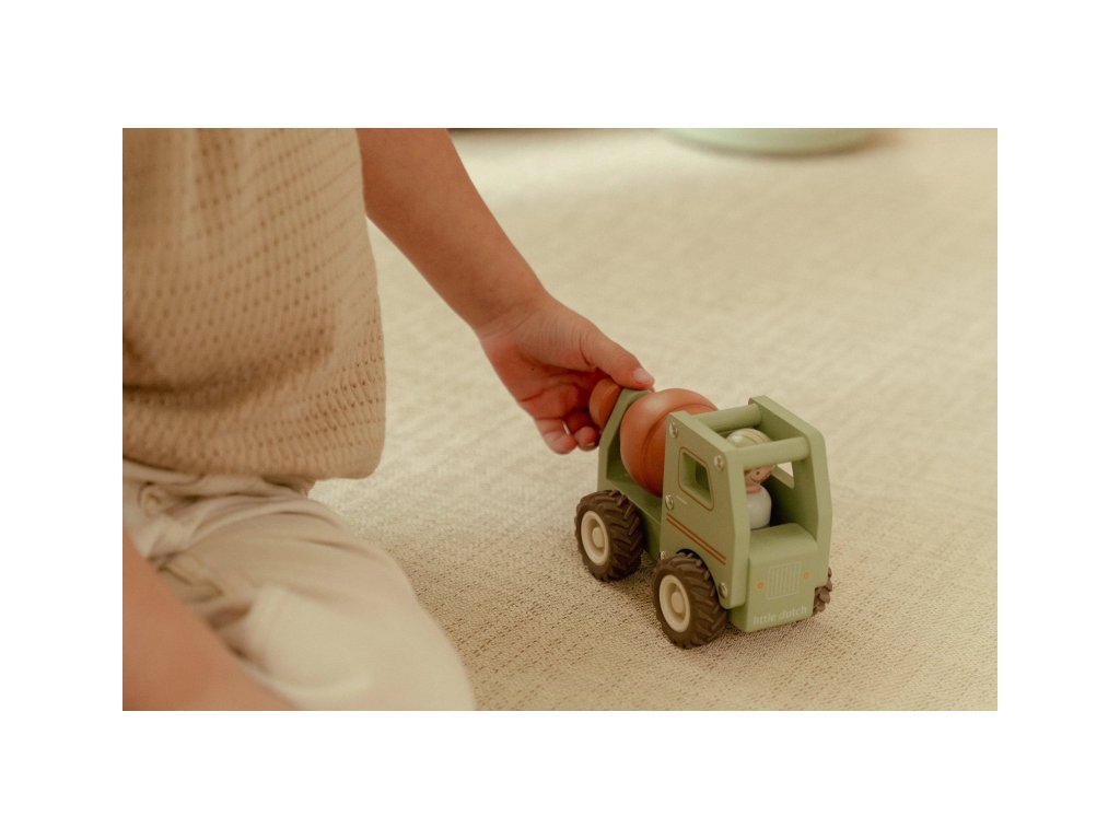 Míchat a stavět! Tento dřevěný míchač betonu je připraven na práci na stavbě. Při jízdě se buben míchačky otáčí, takže hra vypadá jako skutečná. Robustní náklaďák s gumovými pneumatikami zajišťuje hladkou a tichou jízdu.