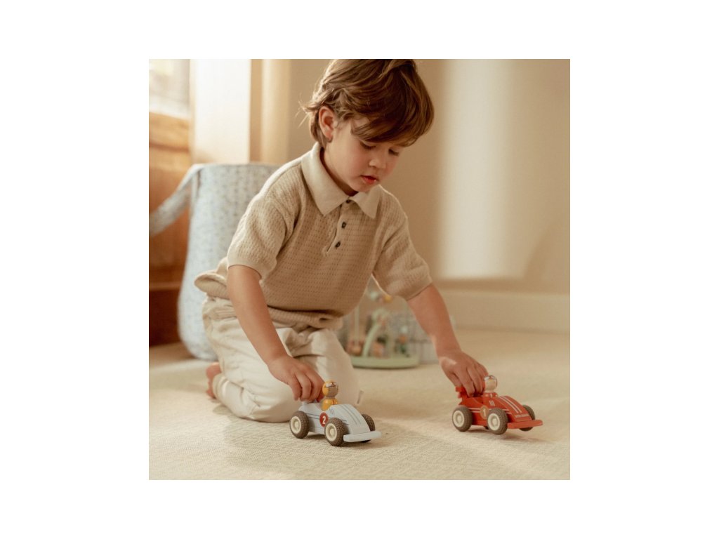 Každé autíčko má veselého řidiče v podobě vyjímatelného panáčka, kterého lze snadno vyměnit, a tak podpořit kreativní hru a fantazii. Pevné dřevěné provedení a kolečka s gumovými pneumatikami zajišťují hladkou a tichou jízdu po jakémkoli povrchu.