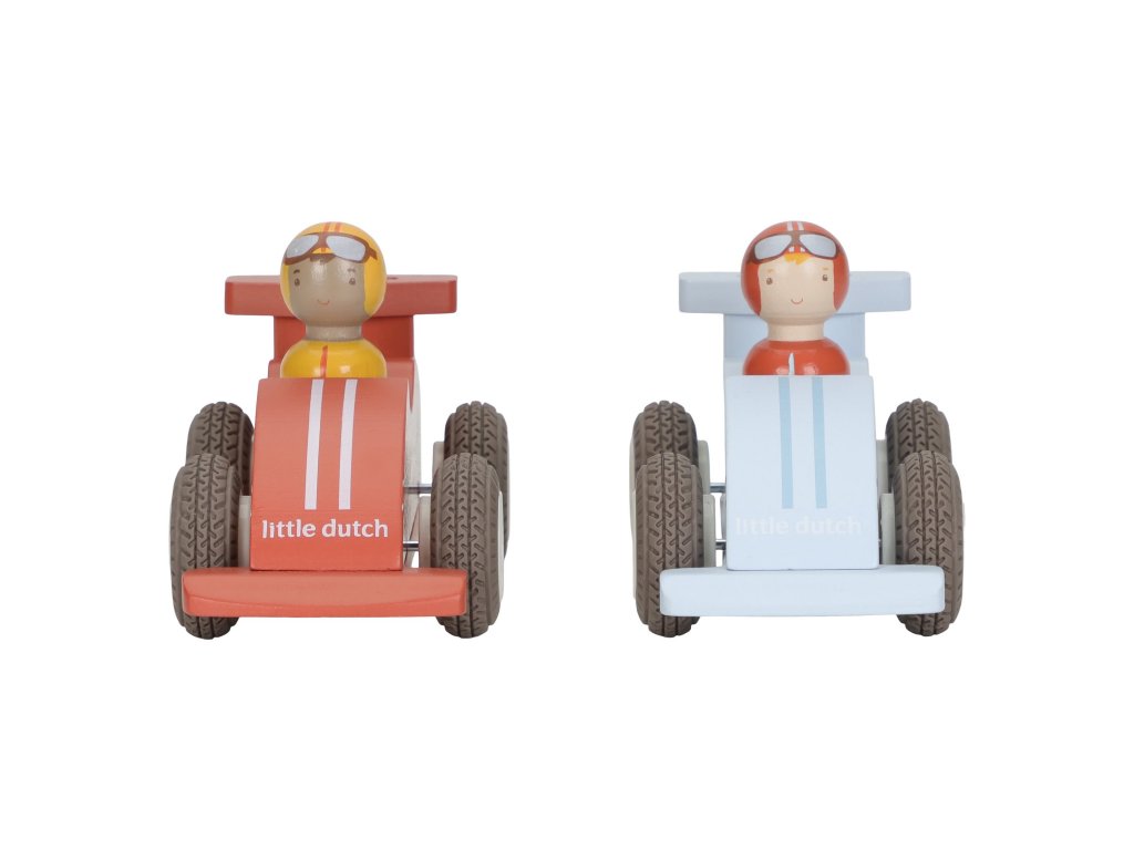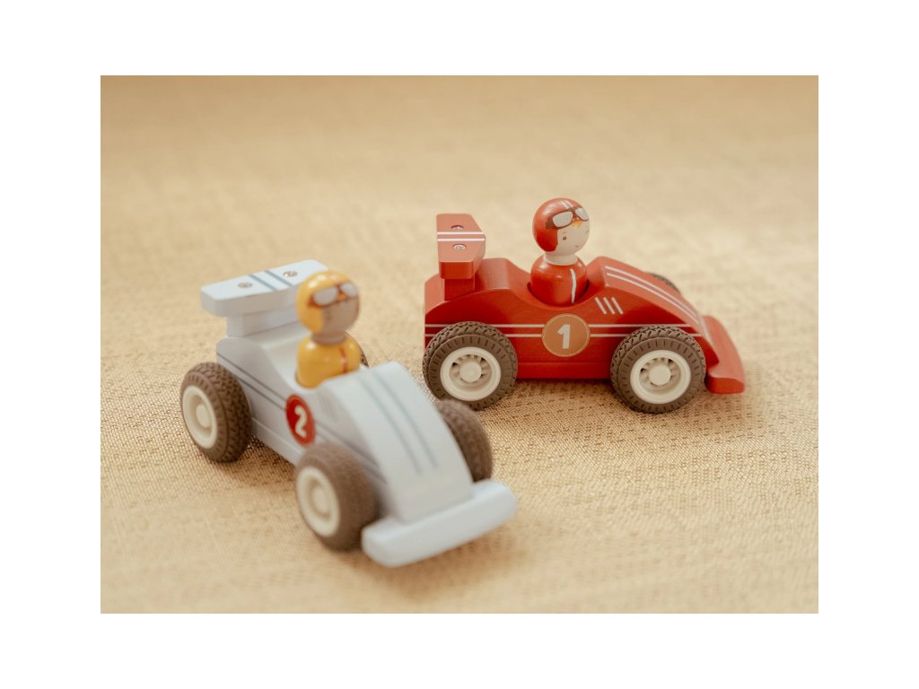 Připravit, pozor… start! Sada dvou dřevěných autíček na setrvačník potěší každého malého závodníka. Stačí autíčko natáhnout dozadu, pustit – a sledovat, jak sviští vpřed neuvěřitelnou rychlostí.