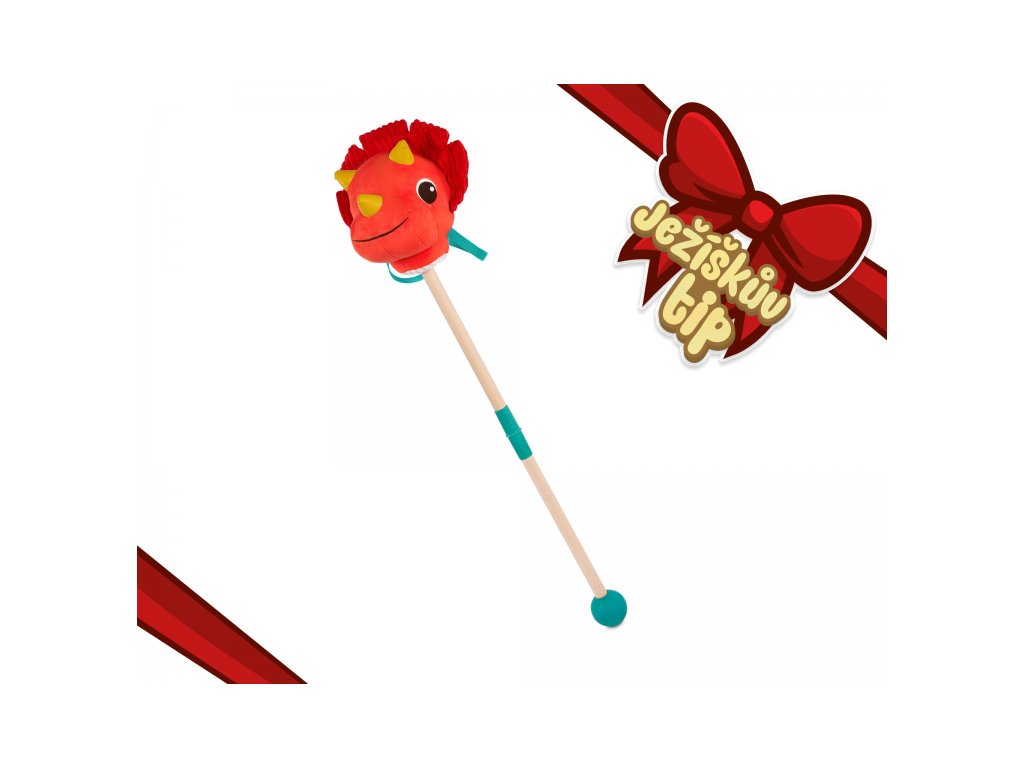 Připravte se na jízdu do pravěkého světa s roztomilým Tommy Triceratopsem od B. Toys! Tento plyšový dinosaurus na tyči je originální verzí klasické hračky "hobby horse" a zaručí dětem spoustu aktivní zábavy. Hebká hlava z různých senzorických materiálů stimuluje hmat, stisknutím tlačítka se navíc ozvou veselé dinosauří zvuky. Děti si mohou nasednout, pevně chytit otěže a rozběhnout se za dobrodružstvím. Díky pogumované spodní části nezanechá tyč škrábance na podlaze.