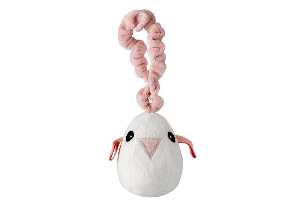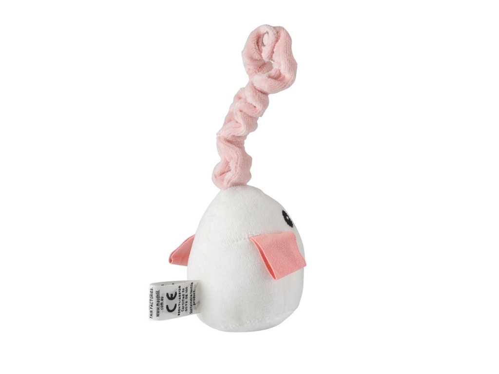 Tento roztomilý ptáček se zvukem (při pohybu cvrliká) je vyrobený z organické bavlny a díky pohodlné gumičce ho lze zavěsit na dětskou postýlku nebo kočárek.
