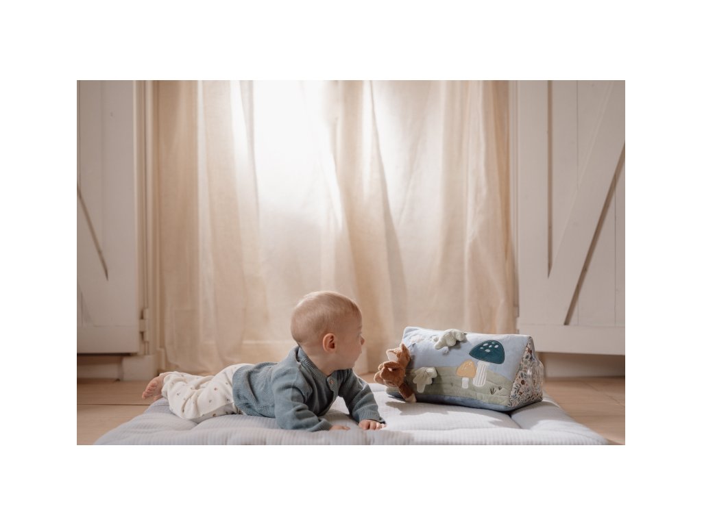 Polštářek z jemného, měkkého materiálu s krásnými motivy života v lese je speciálně navržený, aby podporoval hraní dítěte na bříšku. Hračky na polštářku i originální vyšívané aplikace lákají dítě ke zkoumání a pozorování. Každá strana polštářku je jiná, takže stačí polštářek otočit a nabídnout dítěti nové podněty k zabavení i rozvíjení jeho jednotlivých smyslů.