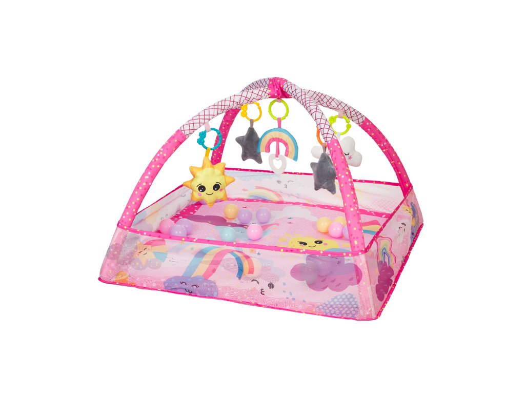 Hrací deka s hrazdou KikkaBoo Pink Sky je ideální volbou pro rozvoj dítěte v prvních letech života. Pohodlná hrací deka s krásnými ilustracemi je navržena tak, aby podporovala smyslový rozvoj a motorické dovednosti dítěte od narození až do 36 měsíců.