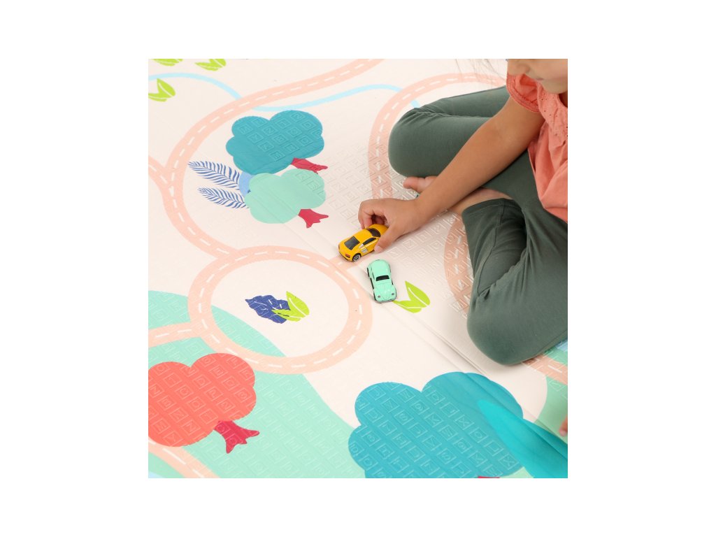 Podložka je dostatečně flexibilní a velká, takže si z ní děti mohou postavit tunel, překážkovou dráhu nebo si z ní vytvořit herní ostrůvek plný fantazie. Měkký a odolný pěnový materiál s protiskluzovou strukturou zajišťuje bezpečnost i pohodlí při každodenní hře.