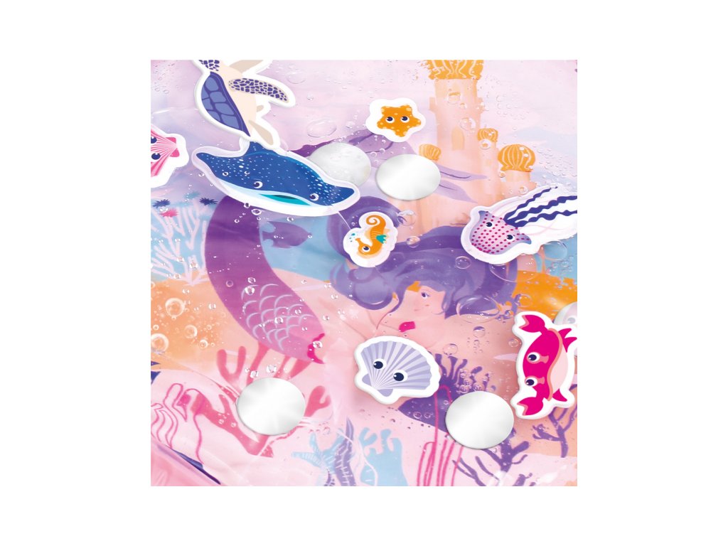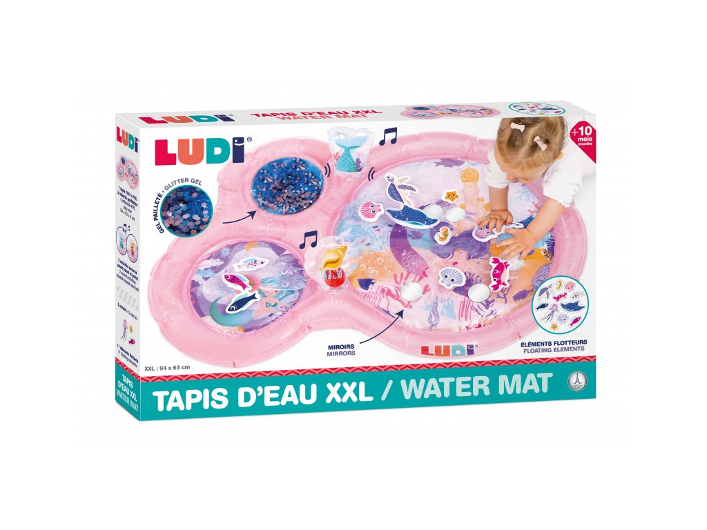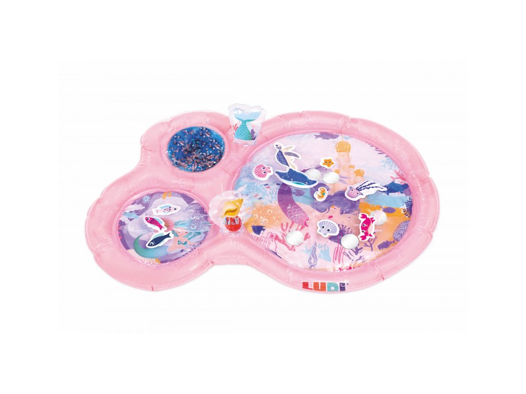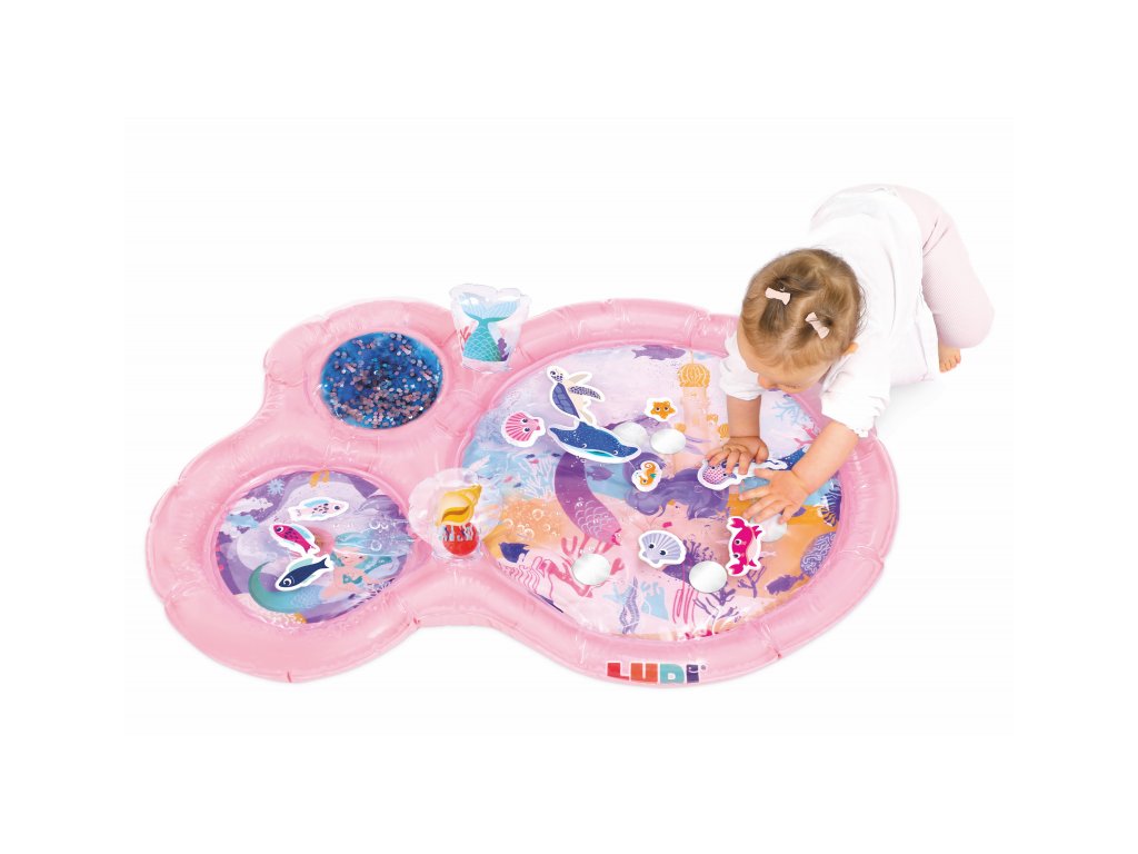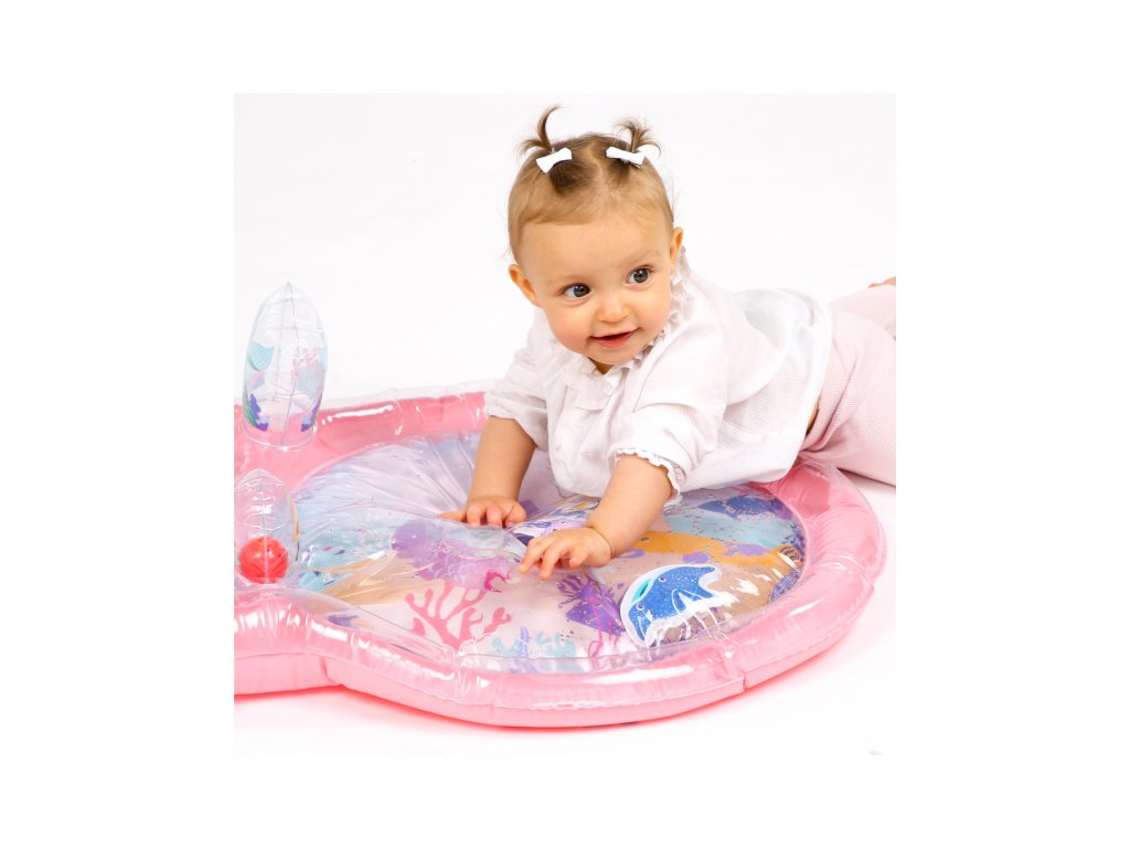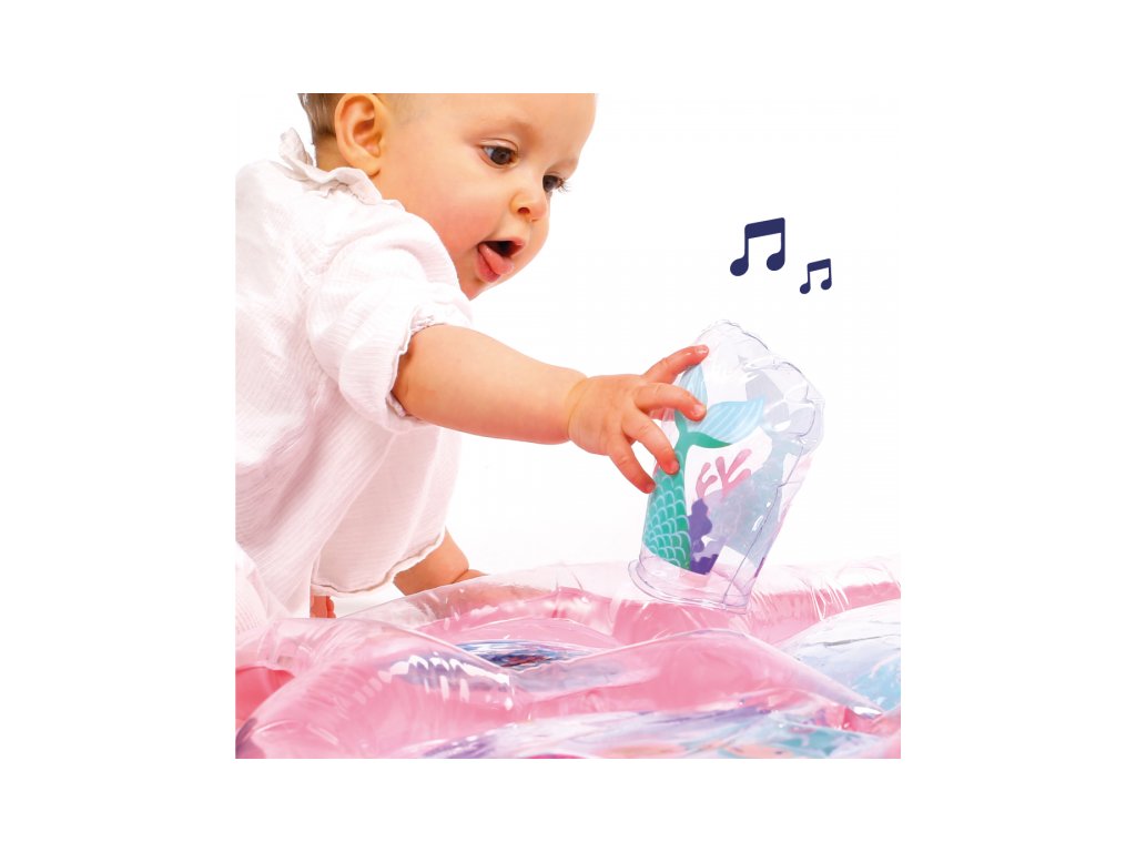 Interaktivní podložka na hraní naplněná vodou připomíná skutečný podmořský svět s vodními živočichy. Figurky mořských tvorů se uvnitř ve vodě začnou pohybovat, kdykoli dítě na podložku sáhne rukou. Jednotlivé části podložky jsou propojené, takže když se dítě o podložku opře, voda proudí mezi jednotlivými částmi. Na nafukovacích okrajích jsou umístěna dvě nafukovací madla, která při zmáčknutí pískají a cinkají.