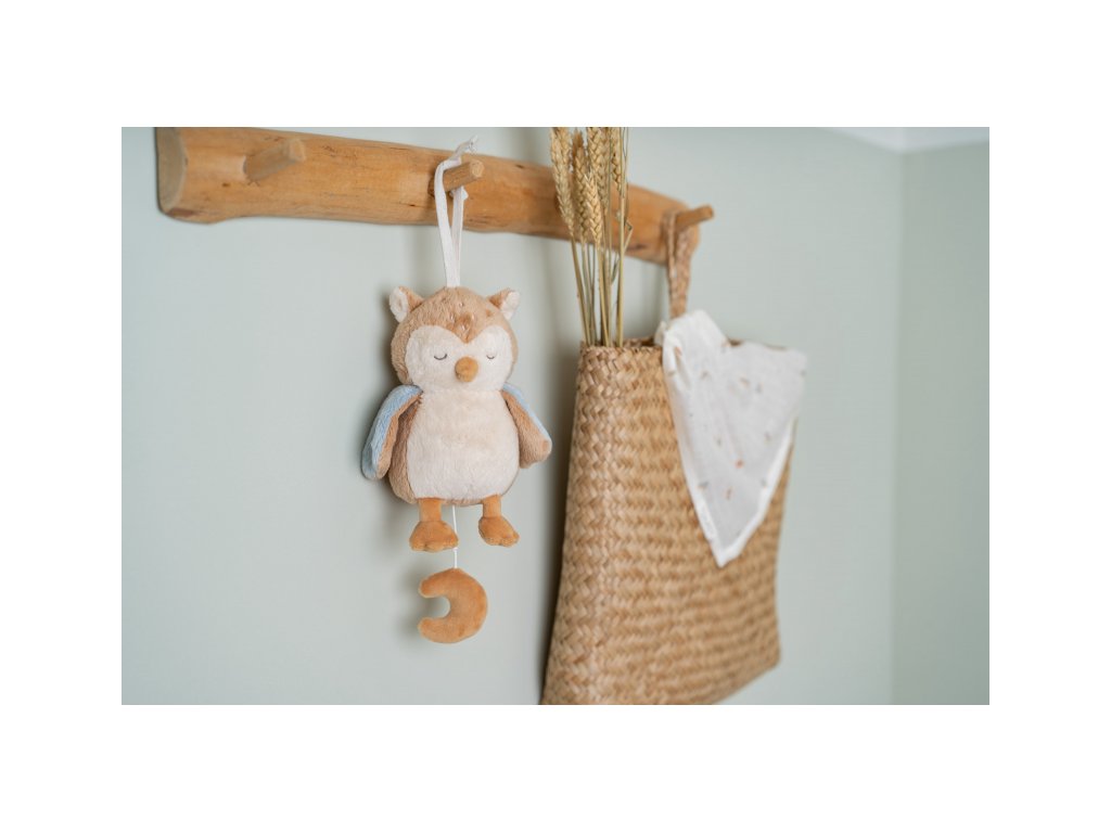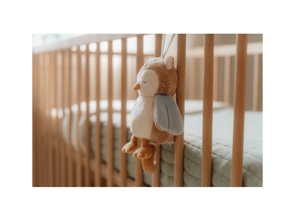 Závěsná hračka v podobě moudré sovy v sobě skrývá natahovací hudební box s příjemnou ukolébavkou, která vaše miminko uklidní a pomůže mu usnout. Hračku snadno připevníte k postýlce či komodě.