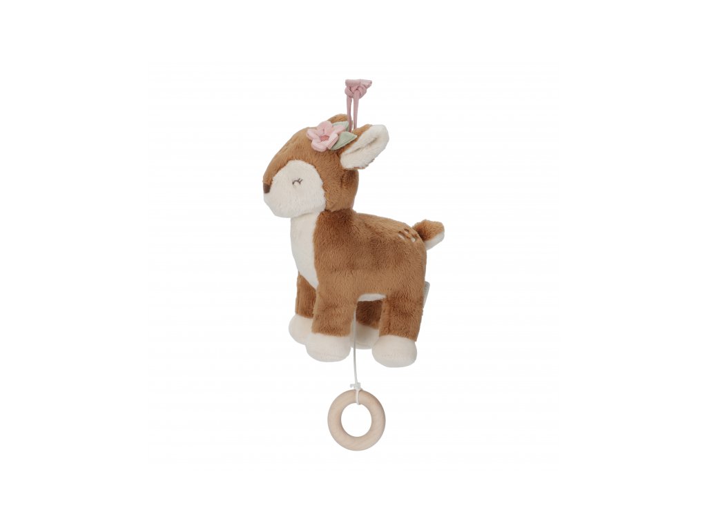 Závěsná hračka v podobě něžné srnky v sobě skrývá natahovací hudební box s příjemnou ukolébavkou, která vaše miminko uklidní a pomůže mu usnout. Hračku snadno připevníte k postýlce či komodě.