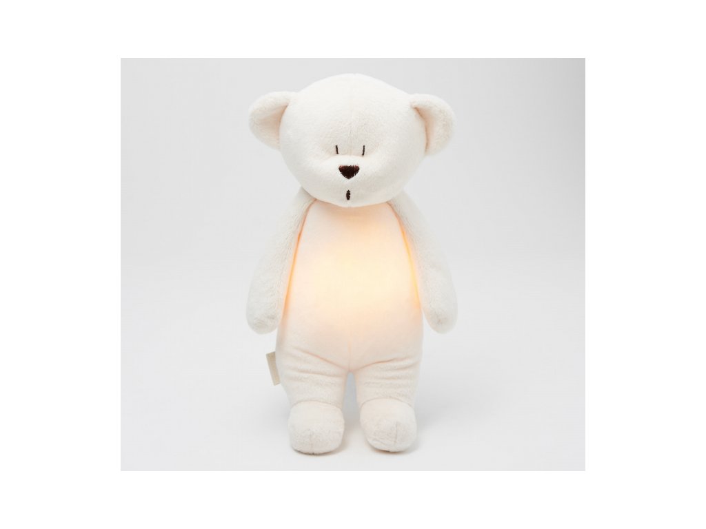 Bříško medvídka svítí a slouží jako noční světlo s výběrem sedmi barev svícení. Jemné světlo pomáhá dítěti cítit se v postýlce bezpečně. Světlo je možné zapnout i bez zvuků. Při zapnuté funkci Shake světlo zapnete zatřesením hračkou. Medvídek se při svícení nijak nezahřívá a je pro dítě zcela bezpečný.