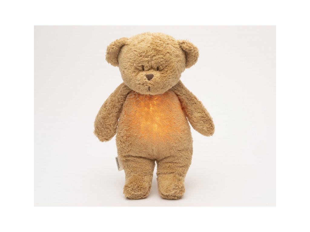 Bříško medvídka svítí a slouží jako noční světlo s výběrem sedmi barev svícení. Jemné světlo pomáhá dítěti cítit se v postýlce bezpečně. Světlo je možné zapnout i bez zvuků. Při zapnuté funkci Shake světlo zapnete zatřesením hračkou. Medvídek se při svícení nijak nezahřívá a je pro dítě zcela bezpečný.