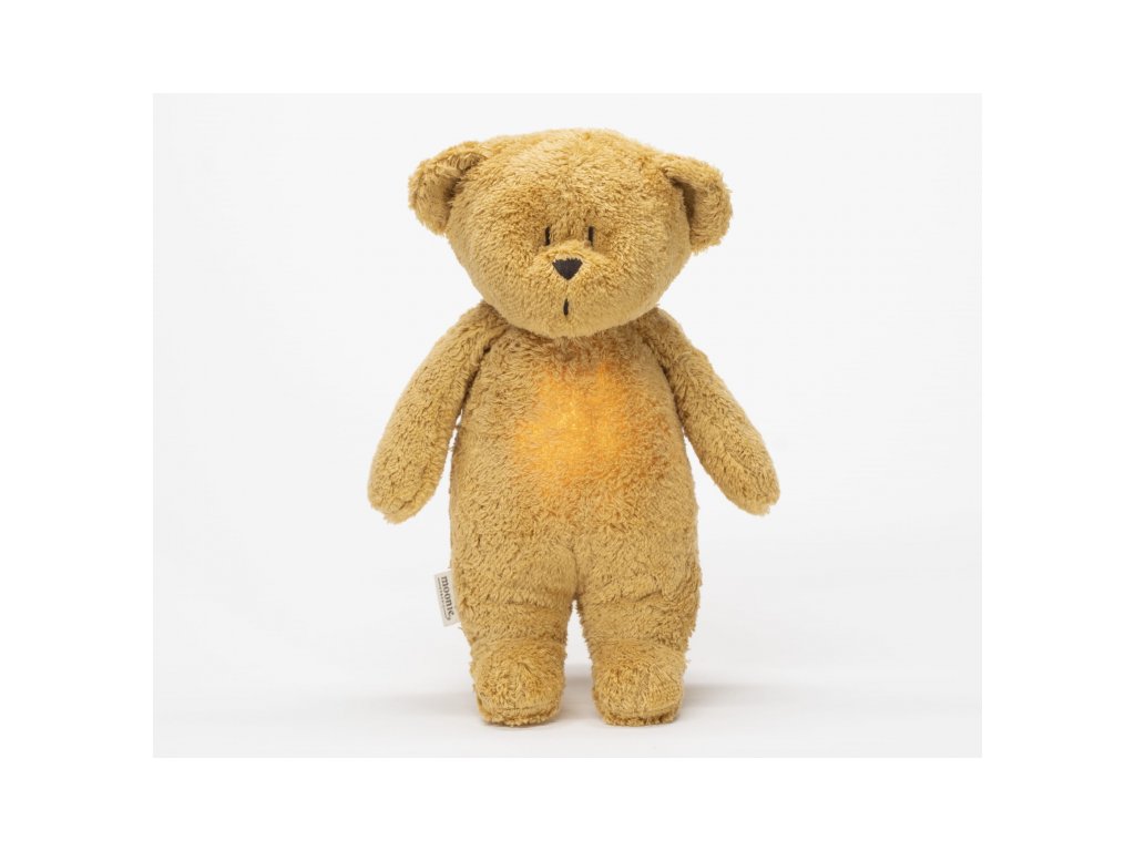 Bříško medvídka svítí a slouží jako noční světlo s výběrem sedmi barev svícení. Jemné světlo pomáhá dítěti cítit se v postýlce bezpečně. Světlo je možné zapnout i bez zvuků. Při zapnuté funkci Shake světlo zapnete zatřesením hračkou. Medvídek se při svícení nijak nezahřívá a je pro dítě zcela bezpečný.