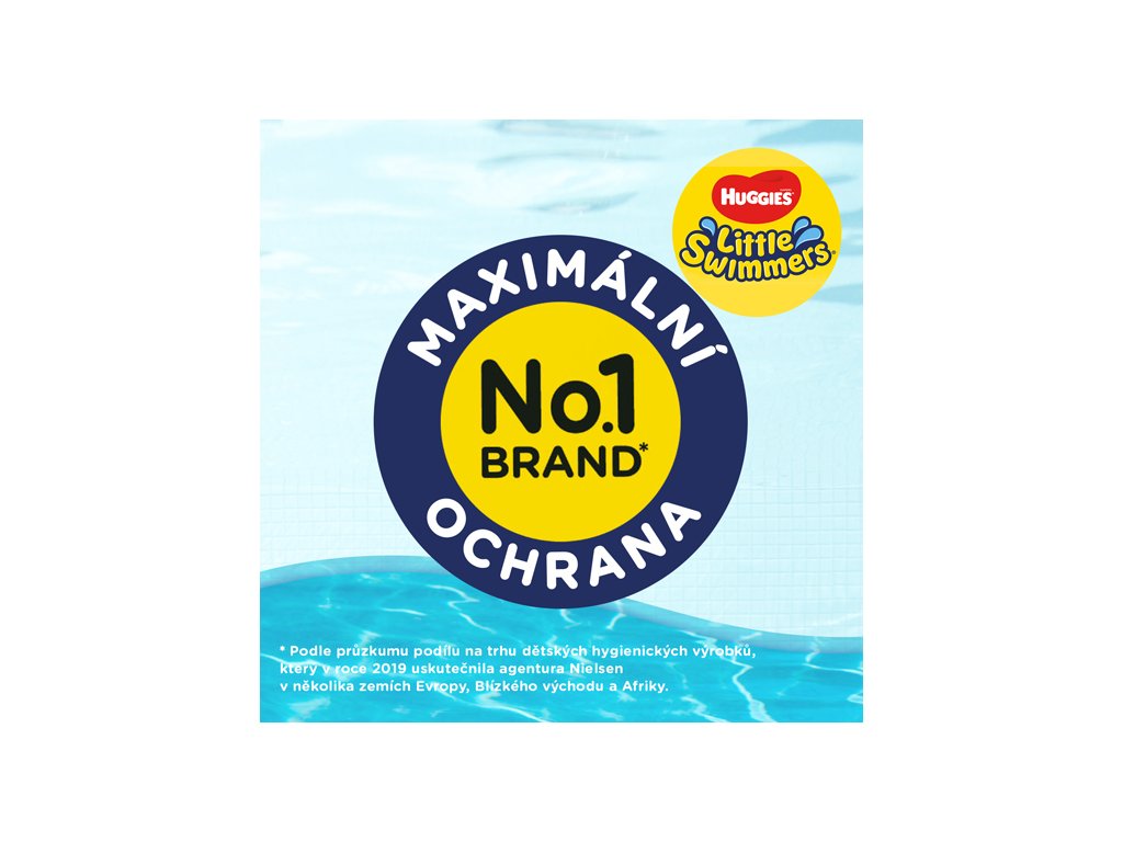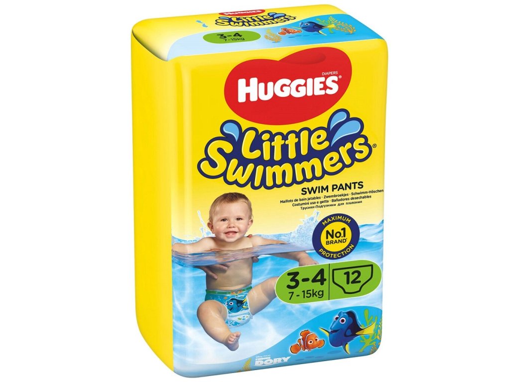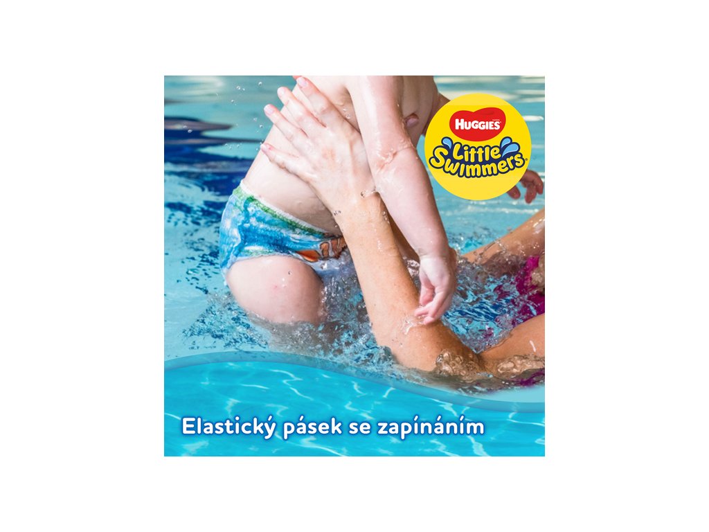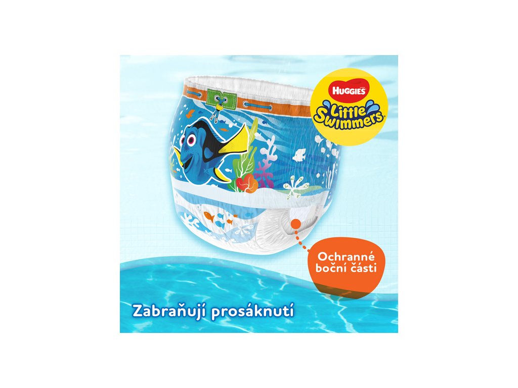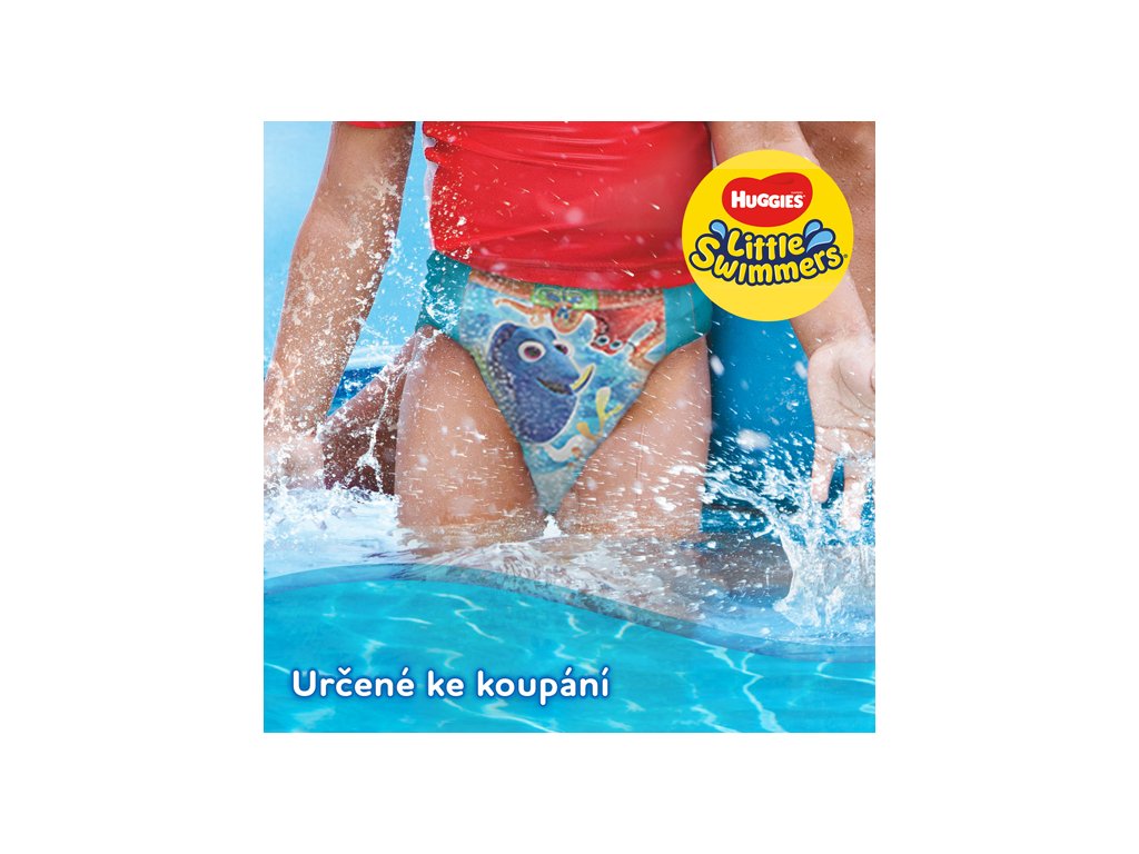 Speciální jednorázové plenky Huggies Little Swimmers do vody jsou určeny pro děti od 7 do 15 kg. Plenky mají elastické boky pro pohodlné oblékání a velmi dobrou absorpci, která nepropustí tekutinu. Díky vysokému pasu zabraňují protečení vody svrchu a speciální absorpční vložka nezvětšuje jejich objem. Také speciální gumičky zabraňují jejich protékání.