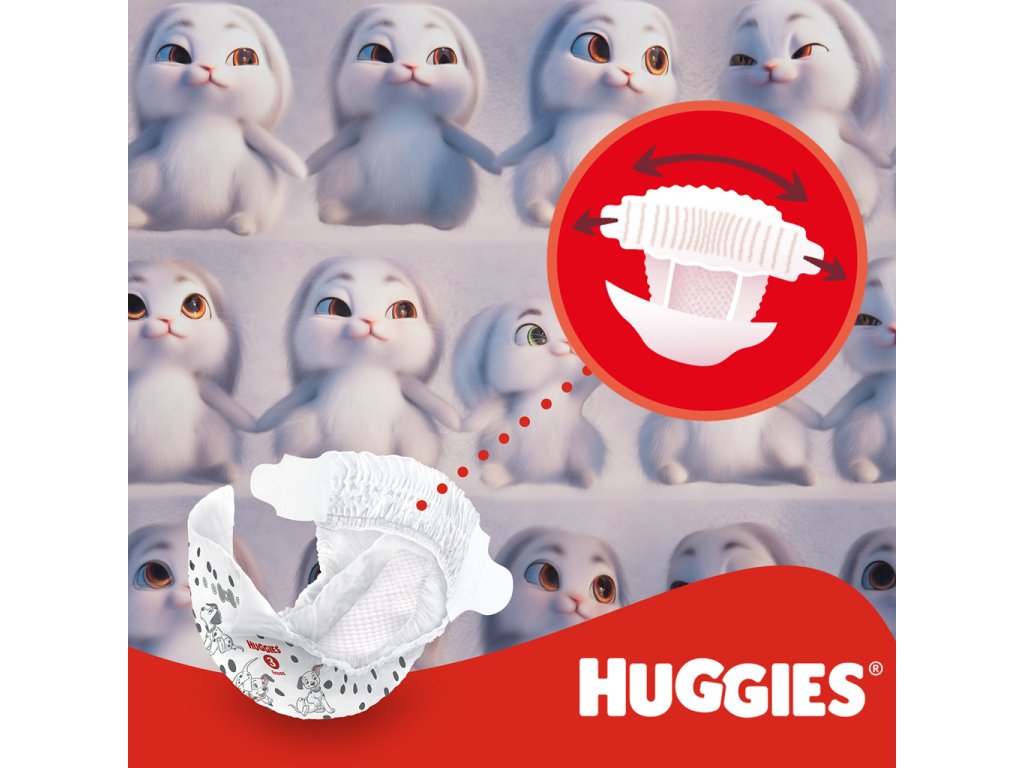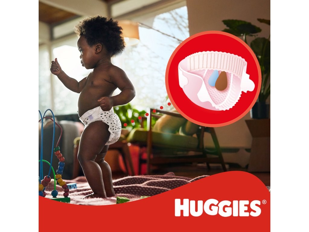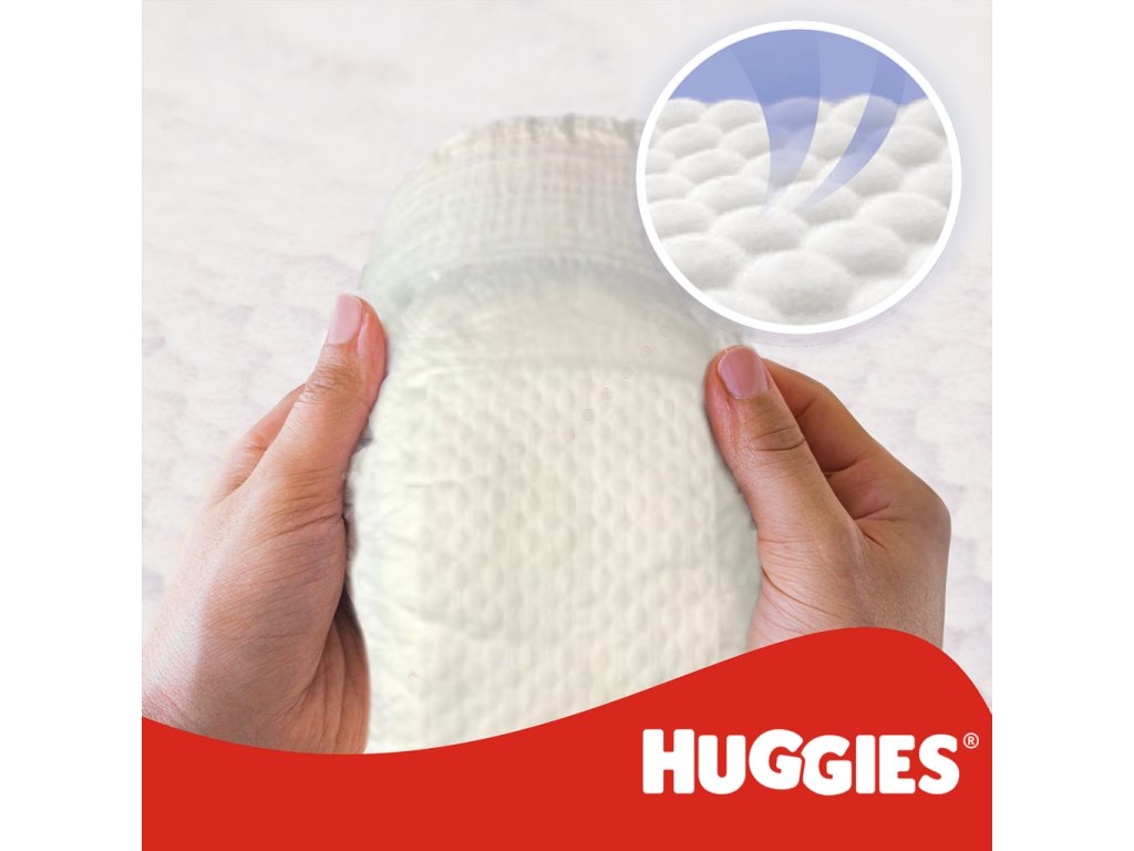 Plenky HUGGIES® Little Movers zajistí celodenní pohodlí a sucho díky super měkkým absorpčním vrstvám a kanálkům, které rovnoměrně rozvádějí vlhkost, aby se snížily objem a lépe padly. Dvojnásobná ochrana proti úniku včetně speciální zádové kapsy proti protečení poskytuje až 12 hodin ochrany ve dne nebo v noci, a to i při aktivním pohybu. Pružný pas a dvojité manžety proti protečení zajišťují lepší přilnavost a příjemnější nošení. Prodyšné materiály umožnují cirkulaci vzduchu a pomáhají tak udržet pokožku dítěte v suchu. Měkké polštářky absorbují tekutinu během několika sekund.