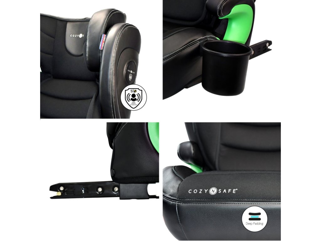 Cozy N Safe Augusta i-Size také obsahuje držák na nápoje, který lze připevnit na obě strany – ideální příslušenství pro uložení pití nebo svačinky během delších cest. Autosedačka je navržena tak, aby se hodila téměř do každého auta, a její instalace díky nastavitelným konektorům ISOFIX a/nebo bezpečnostnímu pásu vozidla zabere jen několik sekund. Veškeré její potahy lze snadno odejmout a prát při 30 °C.