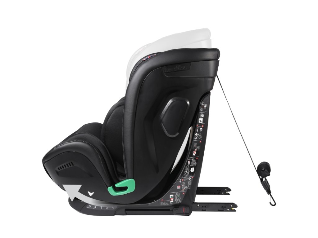 Pro lepší přizpůsobení do většiny vozidel je součástí balení také klínová základna, která pomáhá nastavit správný sklon autosedačky. Nastavitelná opěrka hlavy v 13 polohách zajišťuje, že se autosedačka dokonale přizpůsobí růstu dítěte.