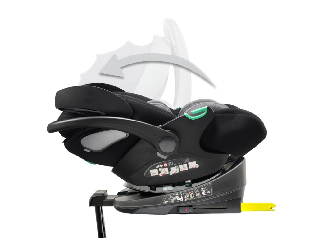 Otočná základna o 360° pro snadné použití: Otočná základna umožňuje snadné usazení a vyjmutí dítěte, čímž snižuje zátěž na záda a zajišťuje hladké přesuny do auta i ven z něj.