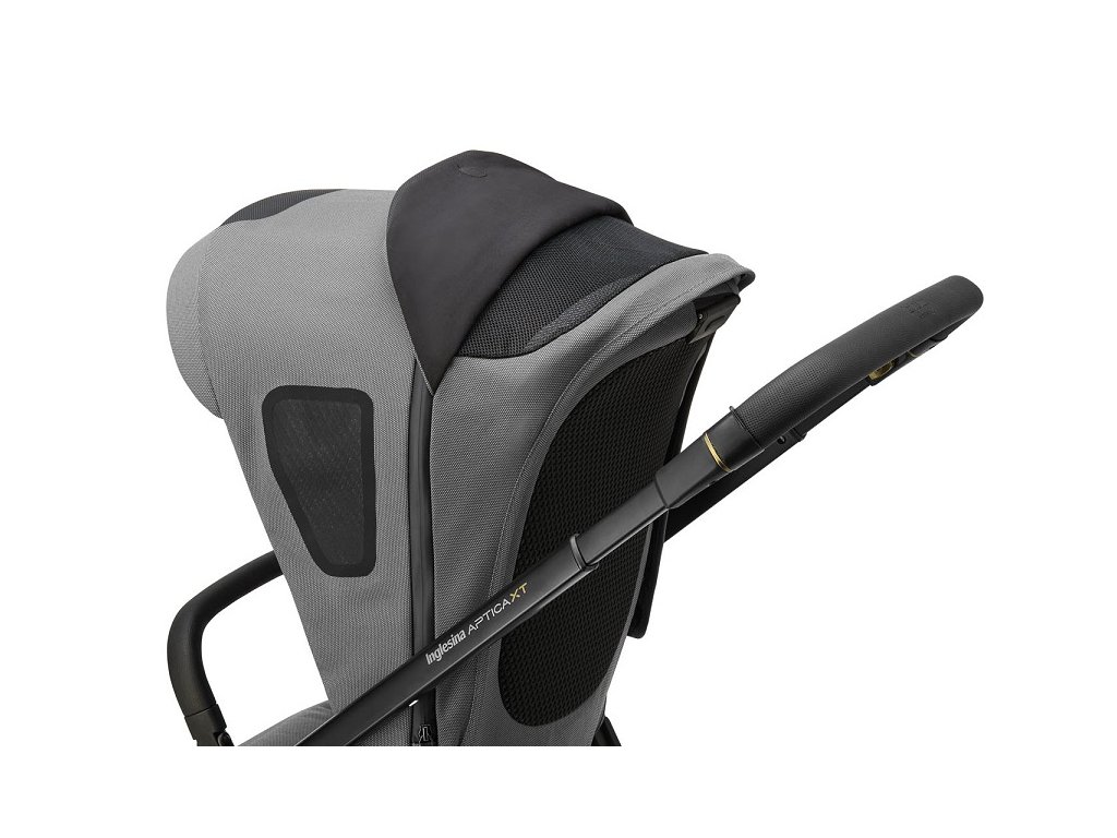 Jakmile je dítě větší a sedí, začne chtít objevovat svět. A to se mu nejlépe dělá z pohodlné sedačky sportovního kočárku. Aptica XT nabízí prostornou sedačku s pevnou konstrukcí s bočním vedením. Ta je vybavená prvky pro ventilaci a ochranu před sluníčkem a přehřátím. Dlouhá opěrka zad s nastavitelným sklonem od sezení do ležení pak umožňuje použití od narození až do dosažení hmotnosti 22 kg (cca 4 roky). Sedačka je nasazena na podvozku a jejím otočením změníte orientaci po nebo proti směru jízdy.