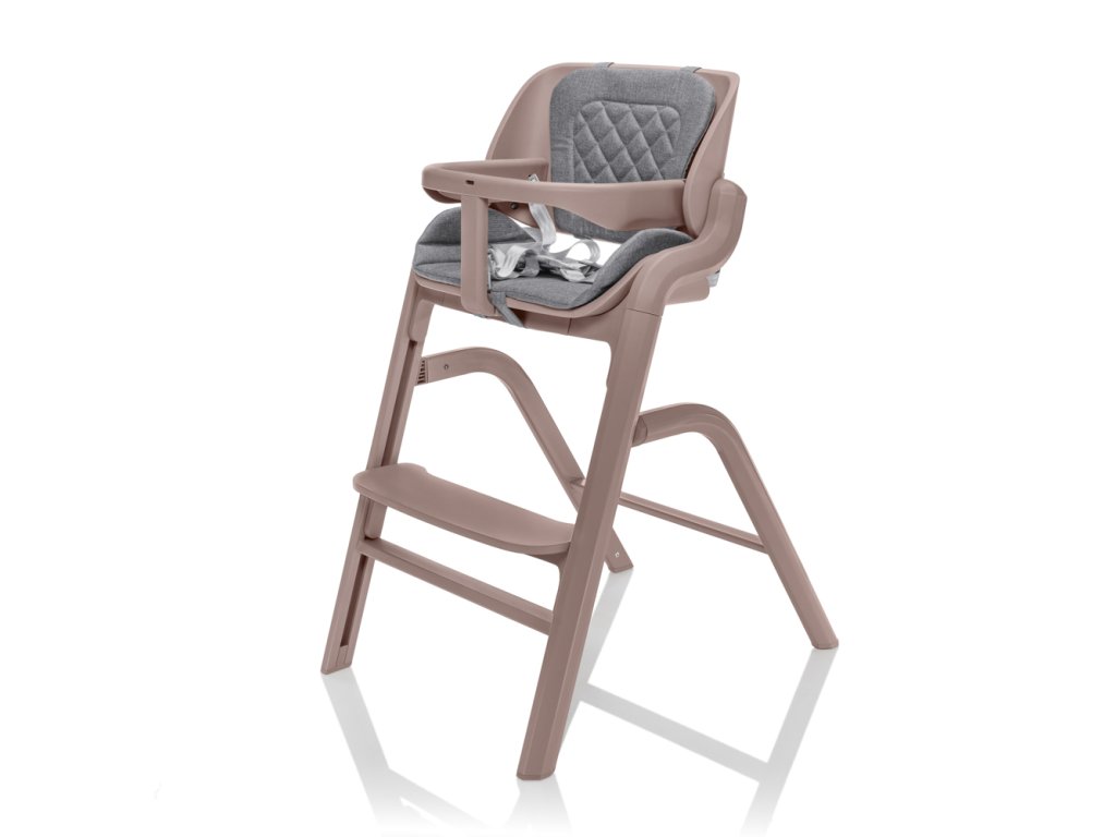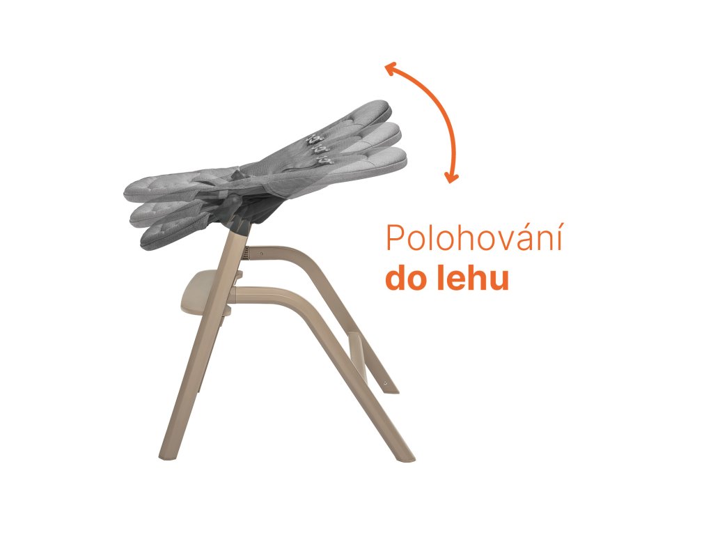 Jakmile dítě začne samostatně sedět, jednoduše odejmete novorozenecký set a získáte vysokou jídelní židličku s praktickým odnímatelným pultíkem. Sedák i opěrku nohou lze výškově nastavit tak, aby se přizpůsobily každé fázi růstu.