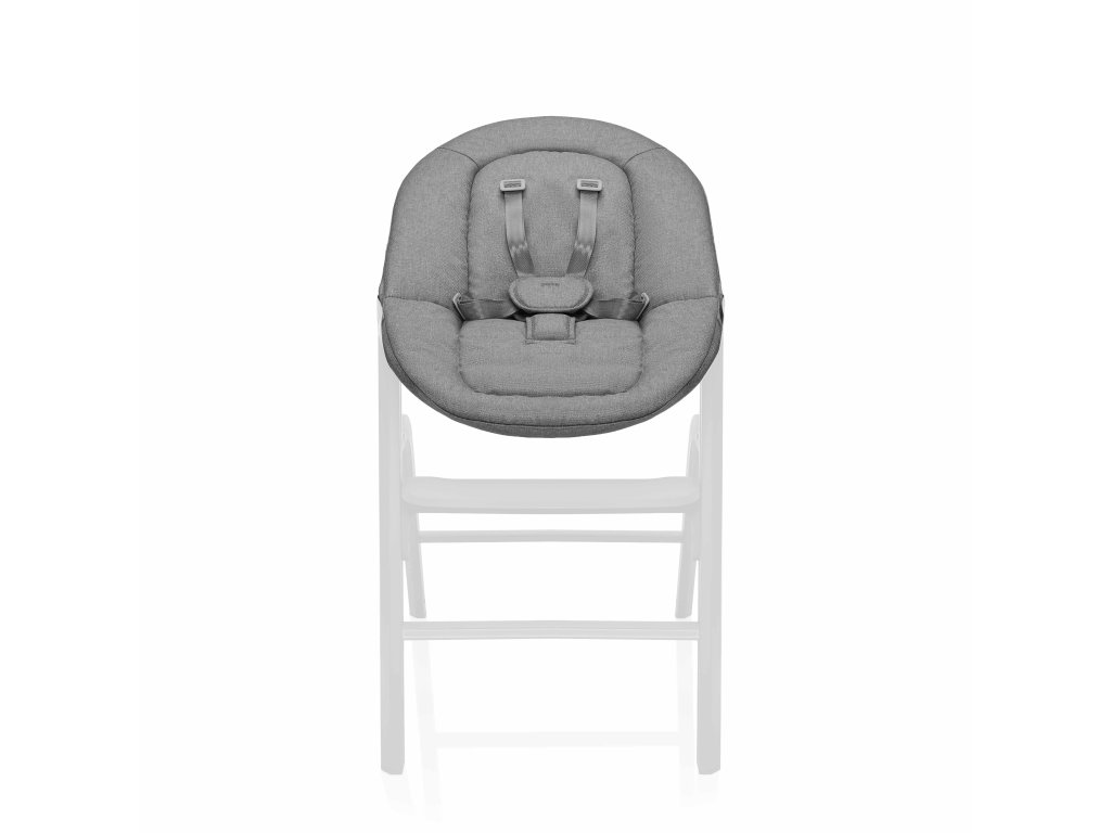 Novorozenecký set je určen pro miminka od narození do 9 kg. Umožňuje nastavení sklonu zádové opěrky až do lehu, má měkké a prodyšné polstrování a pětibodový bezpečnostní pás. Miminko je tak vždy v pohodlí a bezpečí, zároveň je díky výšce židličky zapojeno do dění u rodinného stolu.