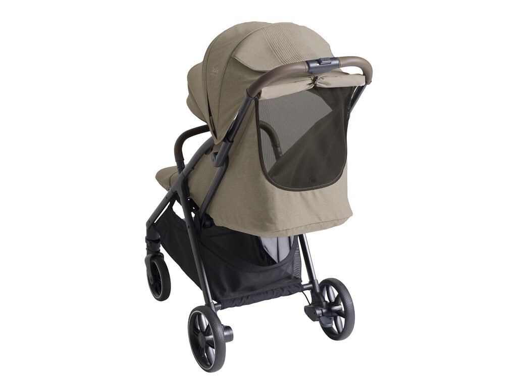 Kočárek nabízí polohovatelné sezení vhodné až do 22 kg. Plně sklopná zádová opěrka vytváří útulný prostor pro odpočinek dítěte. O příjemné klima se postará bouda s ochranou UPF 50+ a voděodolnou úpravou, která zajistí komfort i v náročném počasí. Zadní síťovaný panel zlepšuje proudění vzduchu během teplejších dnů.